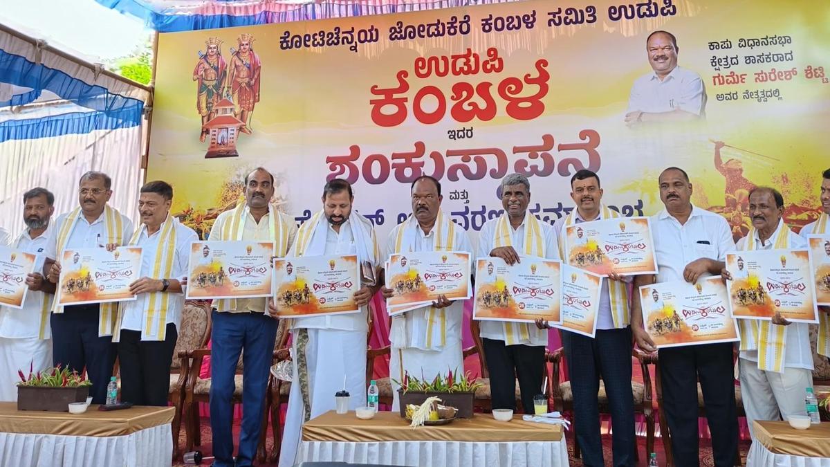 Kota Srinivas Poojary, Udupi-Chikkamagaluru MP, Gurme Suresh Shetty, Kapu MLA, State Kambala Samithi president Belapu Deviprasad Shetty, and other legislators releasing posters of the Koti-Chennayya Udupi Jodu Kare Kambala at the foundation stone-laying ceremony of the Kambala Kare, in Udupi on February 28. | Photo Credit: SPECIAL ARRANGEMENT The Manipal police on Saturday, February 28, booked cases of unlawful assembly, rioting, and criminal trespass against Gurme Suresh Shetty, Kapu MLA, who led the Kambala Kare foundation programme at 80-Badagubettu village, Kota Srinivas Poojary, Udupi-Chikkamagaluru MP, and others. Cases were booked based on the complaint of Udupi tahsildar Gururaj, who accused Mr. Shetty, Mr. Poojary, MLAs Yashpal Suvarna, V. Sunil Kumar, A. Kiran Kumar Kodgi, Gururaj Gantihole, Harish Poonja, and Rajesh U. Naik, Dhananjay Sarji, MLC, Lalaji R. Mendon, former Kapu MLA (all from BJP), Udupi district BJP president Kuthyar Naveen Shetty, Karnataka Kambala Association president Belapu Deviprasad Shetty, and others, of violating the prohibitory orders issued on February 27 by Udupi Deputy Commissioner T.K. Swaroopa, and conducting the foundation stone laying ceremony for the Kambala Kare on February 28. Published – February 28, 2026 08:57 pm IST Share this: Click to share on WhatsApp (Opens in new window) WhatsApp Click to share on Facebook (Opens in new window) Facebook Click to share on Threads (Opens in new window) Threads Click to share on X (Opens in new window) X Click to share on Telegram (Opens in new window) Telegram Click to share on LinkedIn (Opens in new window) LinkedIn Click to share on Pinterest (Opens in new window) Pinterest Click to email a link to a friend (Opens in new window) Email More Click to print (Opens in new window) Print Click to share on Reddit (Opens in new window) Reddit Click to share on Tumblr (Opens in new window) Tumblr Click to share on Pocket (Opens in new window) Pocket Click to share on Mastodon (Opens in new window) Mastodon Click to share on Nextdoor (Opens in new window) Nextdoor Click to share on Bluesky (Opens in new window) Bluesky Like this:Like Loading... Post navigation All irrigation projects in North Andhra will be completed in three years, says Naidu I never encouraged violence: Minister Vivek Venkataswamy