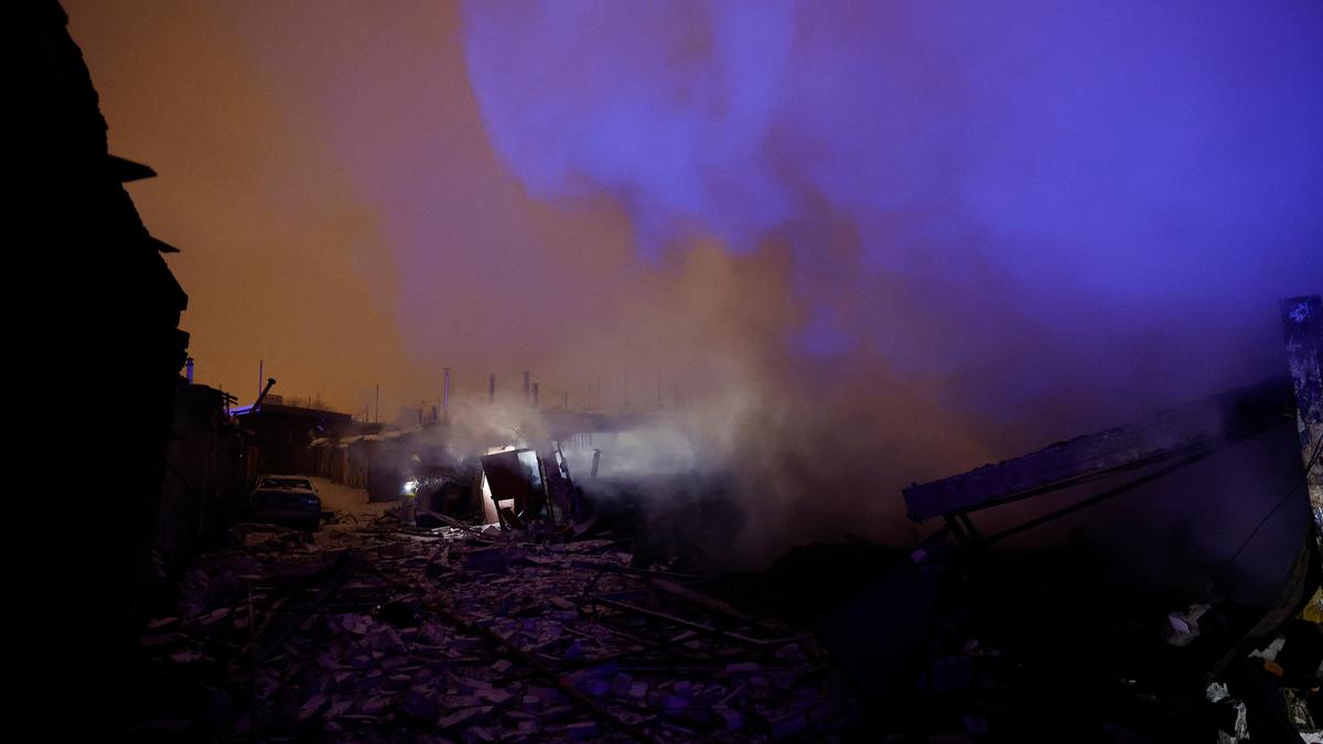 Smoke rises from a compound of car garages damaged during a Russian drone and missile attack, amid Russia’s attack on Ukraine, in Kyiv, Ukraine, January 9, 2026. | Photo Credit: Reuters Russia attacked Ukraine with drones and missiles, killing three and injuring at least 16 in the capital overnight into Friday (January 9, 2026), Ukrainian authorities said. Russia also struck critical infrastructure in the western city of Lviv using an unidentified ballistic missile, said Mayor Andriy Sadoviy. The Western Command of Ukraine’s Air Force later said the missile travelled at a speed of 13,000 kilometres per hour, and that the specific type of rocket was being investigated. Several districts in Kyiv were hit in the attack, said Kyiv City Military Administration head Tymur Tkachenko. In the Desnyanskyi district, a drone crashed onto the roof of a multi-storey building. At another address in the same district, the first two floors of a residential building were damaged as a result of the attack. In Dnipro district, parts of a drone damaged a multi-storey building and a fire broke out. Running water and electricity were disrupted in parts of the capital as a result of the attack, Kyiv’s Mayor Vitali Klitschko said. The attack took place just hours after Ukrainian President Volodymyr Zelenskyy alerted the nation about Russia’s intentions for a large-scale offensive. He said that Russia aimed to take advantage of the frigid weather in the capital, making roads and streets perilously icy. Published – January 09, 2026 11:51 am IST Share this: Click to share on WhatsApp (Opens in new window) WhatsApp Click to share on Facebook (Opens in new window) Facebook Click to share on Threads (Opens in new window) Threads Click to share on X (Opens in new window) X Click to share on Telegram (Opens in new window) Telegram Click to share on LinkedIn (Opens in new window) LinkedIn Click to share on Pinterest (Opens in new window) Pinterest Click to email a link to a friend (Opens in new window) Email More Click to print (Opens in new window) Print Click to share on Reddit (Opens in new window) Reddit Click to share on Tumblr (Opens in new window) Tumblr Click to share on Pocket (Opens in new window) Pocket Click to share on Mastodon (Opens in new window) Mastodon Click to share on Nextdoor (Opens in new window) Nextdoor Click to share on Bluesky (Opens in new window) Bluesky Like this:Like Loading... Post navigation State Bank of India sets up Global Capability Centre in Bengaluru Indian top IT firms set for another tepid quarter on weak US demand, client spending