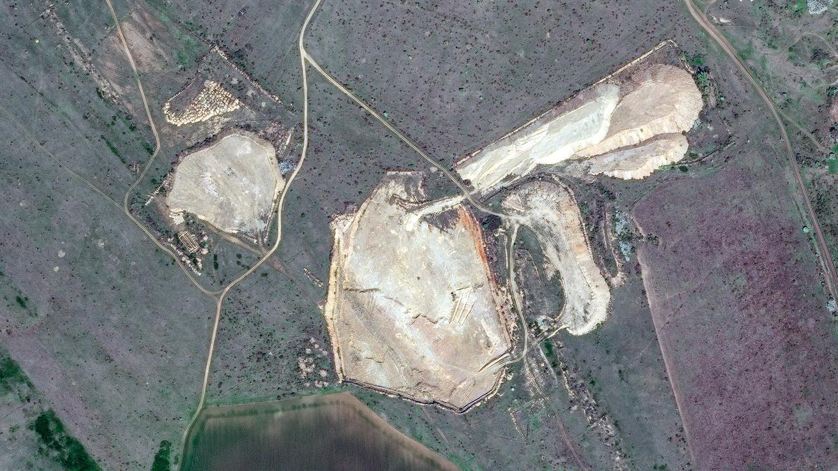 A satellite image of Bobrykivske gold mine in occupied Luhansk, eastern Ukraine