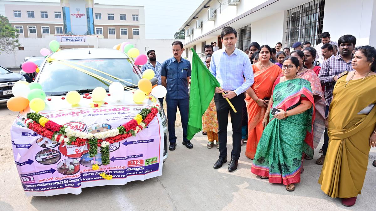 Collector Sumit Kumar flagging off “Sakhi One Stop Centre” mobile vehicle at the Collectorate junction in Chittoor on Monday.