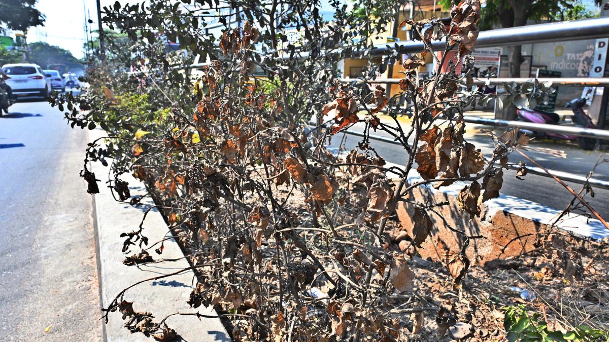 Residents have raised concern that saplings planted on newly constructed medians on key stretches of Coimbatore city are drying up due to lack of maintenance.