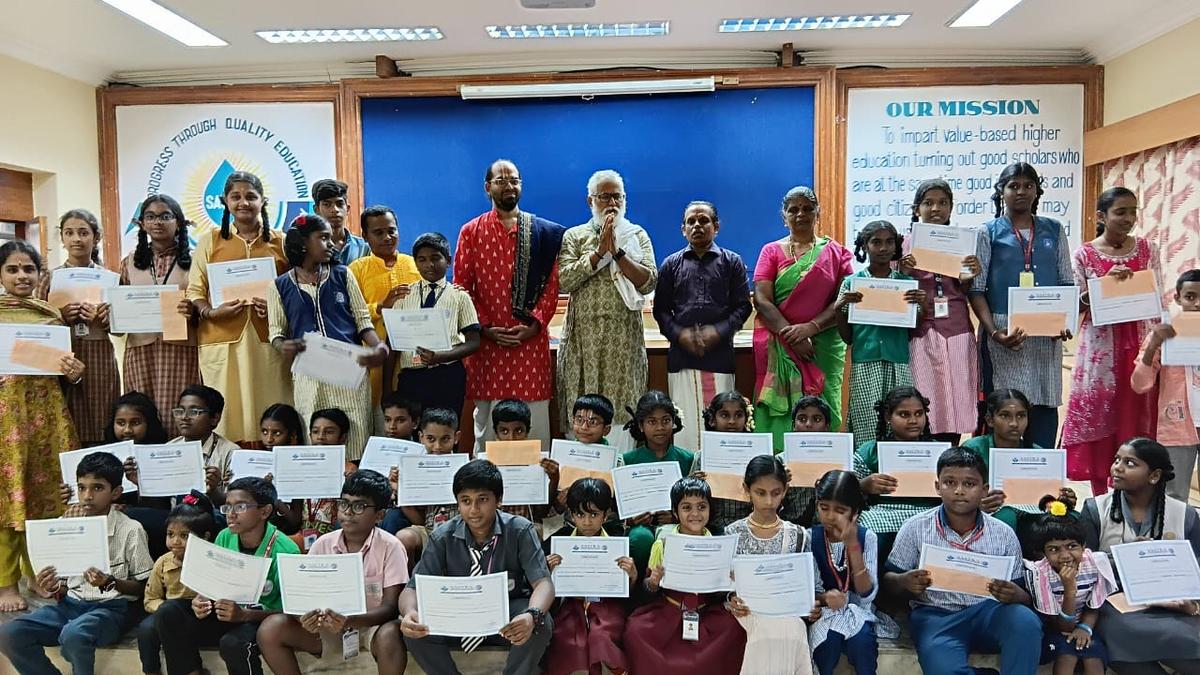 Students participating in a Tiruppavai–Tiruvempavai recitation contest organised by SASTRA Deemed University at its main campus in Thanjavur on Sunday. | Photo Credit: Special arrangement A Thiruppavai–Thiruvempavai recitation contest was organised by SASTRA Deemed University on Sunday at its main campus in Thanjavur and at the Srinivasa Ramanujan Centre in Kumbakonam. The objective of the competition was to instil ethical values and spiritual thinking among students while providing a platform to showcase their innate talents, the organisers said. At the main campus, students from over 20 schools in Thanjavur and neighbouring areas participated. Srirangam Shri Raman Balaji Bhattachariyar and Thanjavur Sivasri Sivanesan Othuvar were the chief guests and judges. They urged students to draw inspiration from Andal, who composed Tiruppavai, and Manikkavachakar, the author of Thiruvempavai, and to lead lives rooted in faith and moral conviction. In the senior category, T. Santoshi of Sir Sivasamy Iyer Government Aided Higher Secondary School, Thirukattupalli, won the first prize of ₹3,000. In the junior category, M. Venugasree of Kalyanasundaram Government Aided Higher Secondary School secured the first prize. All participants received a cash incentive of ₹500. Prizes were distributed by Professor Venugopal of SASTRA University. At the Srinivasa Ramanujan Centre, students from over 17 schools took part. Madhavan Oduvar served as judge and distributed prizes to winners in both categories. Published – January 11, 2026 08:18 pm IST Share this: Click to share on WhatsApp (Opens in new window) WhatsApp Click to share on Facebook (Opens in new window) Facebook Click to share on Threads (Opens in new window) Threads Click to share on X (Opens in new window) X Click to share on Telegram (Opens in new window) Telegram Click to share on LinkedIn (Opens in new window) LinkedIn Click to share on Pinterest (Opens in new window) Pinterest Click to email a link to a friend (Opens in new window) Email More Click to print (Opens in new window) Print Click to share on Reddit (Opens in new window) Reddit Click to share on Tumblr (Opens in new window) Tumblr Click to share on Pocket (Opens in new window) Pocket Click to share on Mastodon (Opens in new window) Mastodon Click to share on Nextdoor (Opens in new window) Nextdoor Click to share on Bluesky (Opens in new window) Bluesky Like this:Like Loading... Post navigation Watch: Manipur VDF ‘Arm-Down’ strike: Imphal east personnel protest Tiruchi Corporation relocates roadside shops on NSB Road