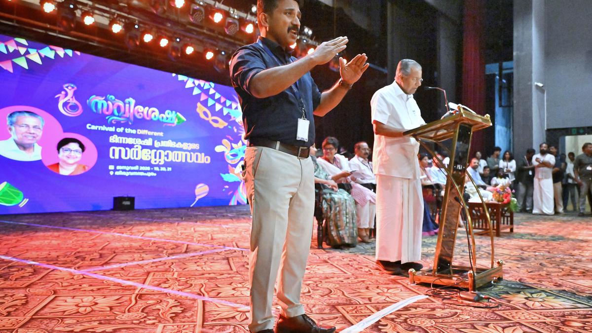 A sign language interpreter helps translate as Chief Minister Pinarayi Vijayan delivers his speech aimed at motivating differently abled people during the closing ceremony of the ‘Special – Carnival of the Different’ organised by the Social Justice Department at Tagore theatre in Thiruvananthapuram on Wednesday. | Photo Credit: NIRMAL HARINDRAN ‘Savishesha – Carnival of the Different’ is a fresh step towards achieving the objective of disabled-friendly Kerala, Chief Minister Pinarayi Vijayan has said. He was speaking after inaugurating the valedictory of the three-day fete for the differently abled organised by the Social Justice department here on Wednesday. “Savishesha carnival was not just a celebration, but also a proclamation by the differently abled that there was nothing they could not do,” the Chief Minister said. The differently abled from various districts had showcased their talents in arts, literature, and sports the past three days and shown that talent knew no limits. The determination shown by them was a lesson for the younger generation, Mr. Vijayan said. A job fair organised by the Kerala Knowledge Economy Mission and the Labour department for the differently abled saw a good response from job-seekers and employers. “Standing on own feet brings not just financial independence but also an increase in self-confidence,” he pointed out. He urged parents at the event to bring their children out of the four walls of homes and identify and develop their talents and impress upon them that they belonged in this world as much as anyone else did. Differently abled did not mean one was any less; just that one had a different talent, the Chief Minister said. Students also had a role in recognising the special talents of those who studied with them and seeing them the same as everyone. Teachers should equip students to do that, he said, urging all to utilise events such as the carnival to their maximum. Mr. Vijayan pointed out that attitudes towards the differently abled had changed and people recognised that they wanted equal rights. This was the reason why there had been a shift from welfare of the differently abled to ensuring their rights. Mr. Vijayan said the government had increased reservation and pension for the differently abled and implemented initiatives such as Barrier-free Kerala and Anuyatra to send the message that society was with them. Congratulating the participants and winners at the festival, the Chief Minister expressed hope that their successes would inspire others too. Minister for Social Justice R. Bindu said the carnival would be celebrated in the coming years too. Dr. Bindu said the government had sanctioned ₹23.85 crore through additional authorisation for providing three-wheelers, electronic wheelchairs, and other assistive devices to applicants through Kerala State Differently Abled Welfare Corporation Ltd. These would be made available this financial year itself. Malappuram district won the first position in overall performance. Thiruvananthapuram bagged the second position and Kottayam third position. The Minister gave away prizes to district teams and the winners of the literary competitions and inclusive sports events as well as the winner of the contest for designing the carnival logo. Published – January 21, 2026 09:14 pm IST Share this: Click to share on WhatsApp (Opens in new window) WhatsApp Click to share on Facebook (Opens in new window) Facebook Click to share on Threads (Opens in new window) Threads Click to share on X (Opens in new window) X Click to share on Telegram (Opens in new window) Telegram Click to share on LinkedIn (Opens in new window) LinkedIn Click to share on Pinterest (Opens in new window) Pinterest Click to email a link to a friend (Opens in new window) Email More Click to print (Opens in new window) Print Click to share on Reddit (Opens in new window) Reddit Click to share on Tumblr (Opens in new window) Tumblr Click to share on Pocket (Opens in new window) Pocket Click to share on Mastodon (Opens in new window) Mastodon Click to share on Nextdoor (Opens in new window) Nextdoor Click to share on Bluesky (Opens in new window) Bluesky Like this:Like Loading... Post navigation Striving to make Telangana compete globally: Bhatti Sabarimala gold theft case: Kerala HC denies bail to three