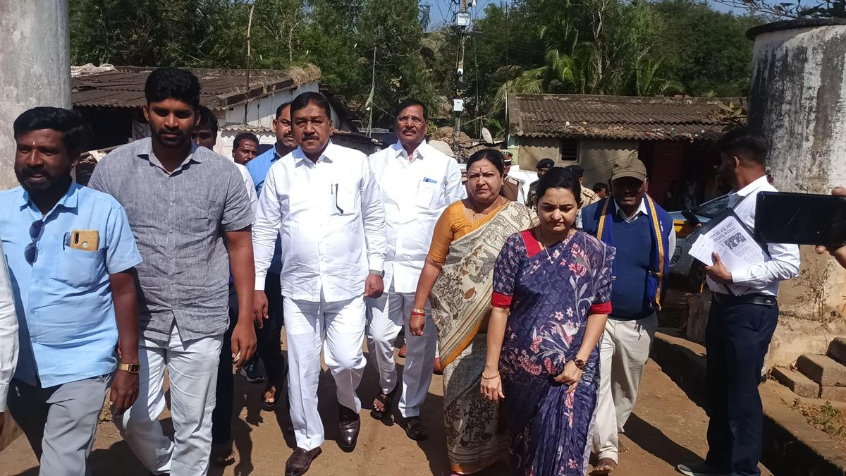 A.R. Krishnamurthy, Chairman of the State Legislature Scheduled Castes and Scheduled Tribes Welfare Committee, and other committee members at Inam Veerapur village in Dharwad district on Friday.