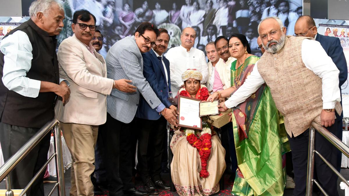 Dakshayini Avvaji, Chancellor of Sharnbasva University, being presented the IETE National-Level Best University Award in Kalaburagi on Saturday. | Photo Credit: ARUN KULKARNI Sharnbasva University has been conferred with the prestigious P.P. Malhotra Memorial Award for Best University by the Institution of Electronics and Telecommunication Engineers (IETE), recognising its excellence at the national level. The award was formally presented by IETE president Sunil to Chancellor Dakshayini Avvaji at the inauguration of the IETE South Zone Seminar and ISF Congress held on the university’s main campus in Kalaburagi on Saturday. Accepting the honour, Ms. Avvaji said the award had earlier been received by Sangha Secretary Basavaraj Deshmukh at the IETE annual convention, and thanked the organisation for presenting it again at the university. She dedicated the recognition to the founder Chancellor, late Sharanbaswappa Appaji, describing it as a tribute to his lifelong efforts in building educational institutions under the Sharanabasaveshwar Vidya Vardak Sangha. “This recognition is the result of Mr. Appaji’s vision and dedication. It is, in many ways, a lifetime achievement award for him,” she said. Ms. Avvaji said such honours bring greater responsibility to strengthen the institutions and realise the vision of developing Sharnbasva University into one of the top 100 universities in the world. She called upon students to focus more on research and innovation, noting that IETE had honoured several students and institutions for excellence in research, paper presentations and poster presentations during the event. The university felicitated IETE office-bearers on the occasion. Awards were also presented to students and colleges for outstanding contributions in research and development activities. Registrar of Sharnbasva University, who is also chairman of the IETE Kalaburagi Centre, welcomed the gathering. Among those present were Sangha secretary Basavaraj Deshmukh, Vice-Chancellor Prof. Anilkumar Bidve, Registrar (Evaluation) S.H. Honnalli, Dean Shivkumar Jewalgi, finance officer Kiran Maka, dean (Research) Sujata Mallapur and others. Published – March 28, 2026 08:42 pm IST Share this: Click to share on WhatsApp (Opens in new window) WhatsApp Click to share on Facebook (Opens in new window) Facebook Click to share on Threads (Opens in new window) Threads Click to share on X (Opens in new window) X Click to share on Telegram (Opens in new window) Telegram Click to share on LinkedIn (Opens in new window) LinkedIn Click to share on Pinterest (Opens in new window) Pinterest Click to email a link to a friend (Opens in new window) Email More Click to print (Opens in new window) Print Click to share on Reddit (Opens in new window) Reddit Click to share on Tumblr (Opens in new window) Tumblr Click to share on Pocket (Opens in new window) Pocket Click to share on Mastodon (Opens in new window) Mastodon Click to share on Nextdoor (Opens in new window) Nextdoor Click to share on Bluesky (Opens in new window) Bluesky Like this:Like Loading... Post navigation Revanth launches legislators’ sports and cultural meet Iran war: Yemen’s Houthis confirm launching attack on Israel