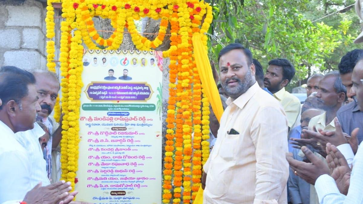Transport Minister Mandipalli Ramprasad Reddy inaugurating the PM Surya Ghar Utsav initiative at Devagudipalle village near Rayachoti in Annamayya district on Saturday. | Photo Credit: ARRANGEMENT Minister for Transport, Youth, and Sports, Mandipalli Ramprasad Reddy, inaugurated solar rooftop systems installed on 36 households in Bapuji Nagar of Devagudipalle village at Chinnamandem mandal in Annamayya district, on Saturday. This is an initiative of the State government to promote renewable energy adoption by introducing rooftop solar units for Scheduled Caste (SC) and Scheduled Tribe (ST) households in Rayachoti constituency under the PM Surya Ghar scheme. Published – April 11, 2026 06:56 pm IST Share this: Click to share on WhatsApp (Opens in new window) WhatsApp Click to share on Facebook (Opens in new window) Facebook Click to share on Threads (Opens in new window) Threads Click to share on X (Opens in new window) X Click to share on Telegram (Opens in new window) Telegram Click to share on LinkedIn (Opens in new window) LinkedIn Click to share on Pinterest (Opens in new window) Pinterest Click to email a link to a friend (Opens in new window) Email More Click to print (Opens in new window) Print Click to share on Reddit (Opens in new window) Reddit Click to share on Tumblr (Opens in new window) Tumblr Click to share on Pocket (Opens in new window) Pocket Click to share on Mastodon (Opens in new window) Mastodon Click to share on Nextdoor (Opens in new window) Nextdoor Click to share on Bluesky (Opens in new window) Bluesky Like this:Like Loading... Post navigation Karnataka police to bring back over 3,000 orderlies to active duty ₹15.45 crore ‘digital arrest’ scam busted; two arrested in Hyderabad, key accused absconding