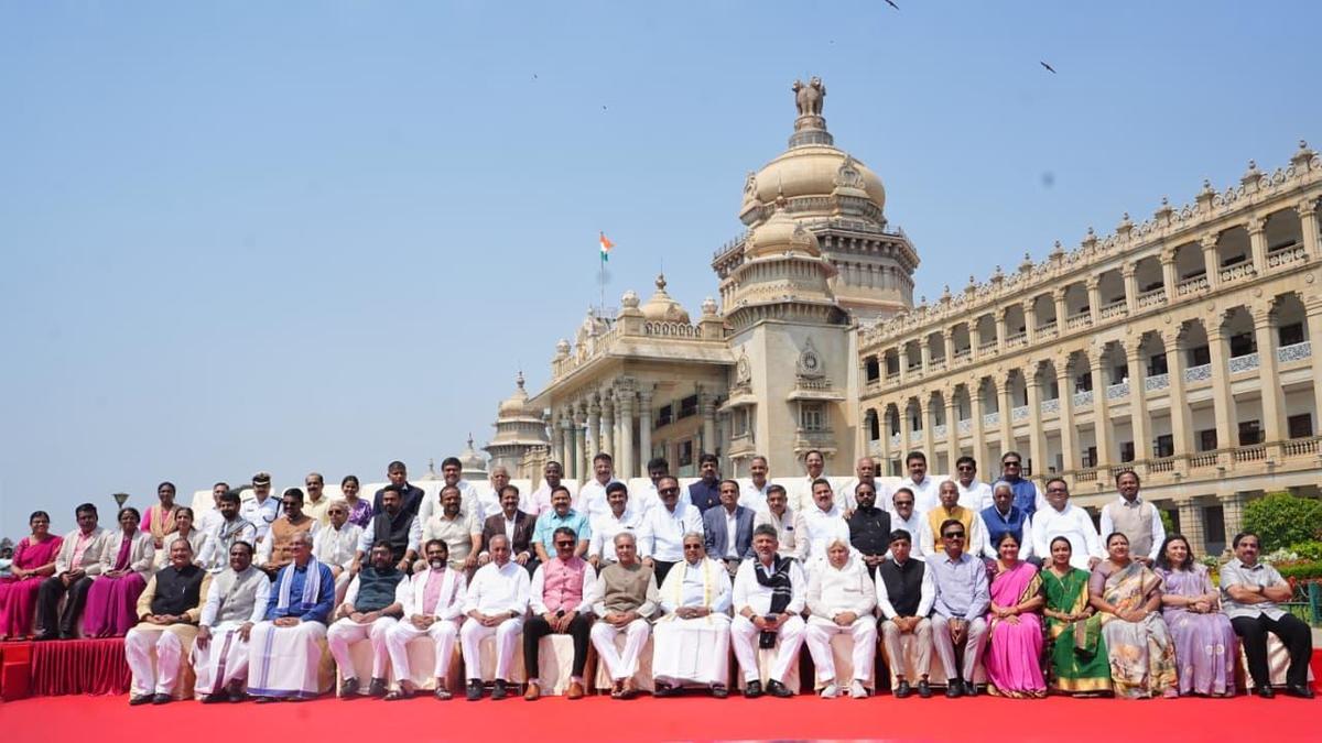 Chief Minister Siddaramaiah, Legislative Council Chairman Basavaraj Horatti, and Deputy Chief Minister D.K. Shivakumar posing for a picture with the MLCs in front of the Vidhana Soudha in Bengaluru on Tuesday. | Photo Credit: SPECIAl ARRANGEMENT Legislative Assembly Speaker U.T. Khader’s announcement on Tuesday to the House of a photo session for all sitting members at 10 a.m. on Wednesday has triggered speculation about possible political developments, including a leadership change after the State Budget session. Traditionally, such photo sessions are held during the final session of an Assembly’s five-year tenure. The photo session is scheduled to take place in front of the majestic Vidhana Soudha on Wednesday. However, an official from the Speaker’s office said that there is nothing unusual about organising a photo session midway through the Assembly’s term. In contrast, the Legislative Council conducts photo sessions once every two years, as one-third of its 75 members retire biennially. A similar session for MLCs was held in front of the Vidhana Soudha on Tuesday. Published – March 24, 2026 09:26 pm IST Share this: Click to share on WhatsApp (Opens in new window) WhatsApp Click to share on Facebook (Opens in new window) Facebook Click to share on Threads (Opens in new window) Threads Click to share on X (Opens in new window) X Click to share on Telegram (Opens in new window) Telegram Click to share on LinkedIn (Opens in new window) LinkedIn Click to share on Pinterest (Opens in new window) Pinterest Click to email a link to a friend (Opens in new window) Email More Click to print (Opens in new window) Print Click to share on Reddit (Opens in new window) Reddit Click to share on Tumblr (Opens in new window) Tumblr Click to share on Pocket (Opens in new window) Pocket Click to share on Mastodon (Opens in new window) Mastodon Click to share on Nextdoor (Opens in new window) Nextdoor Click to share on Bluesky (Opens in new window) Bluesky Like this:Like Loading... Post navigation Collector calls for united fight against TB IPL 2026: KKR names Rinku as Rahane’s deputy