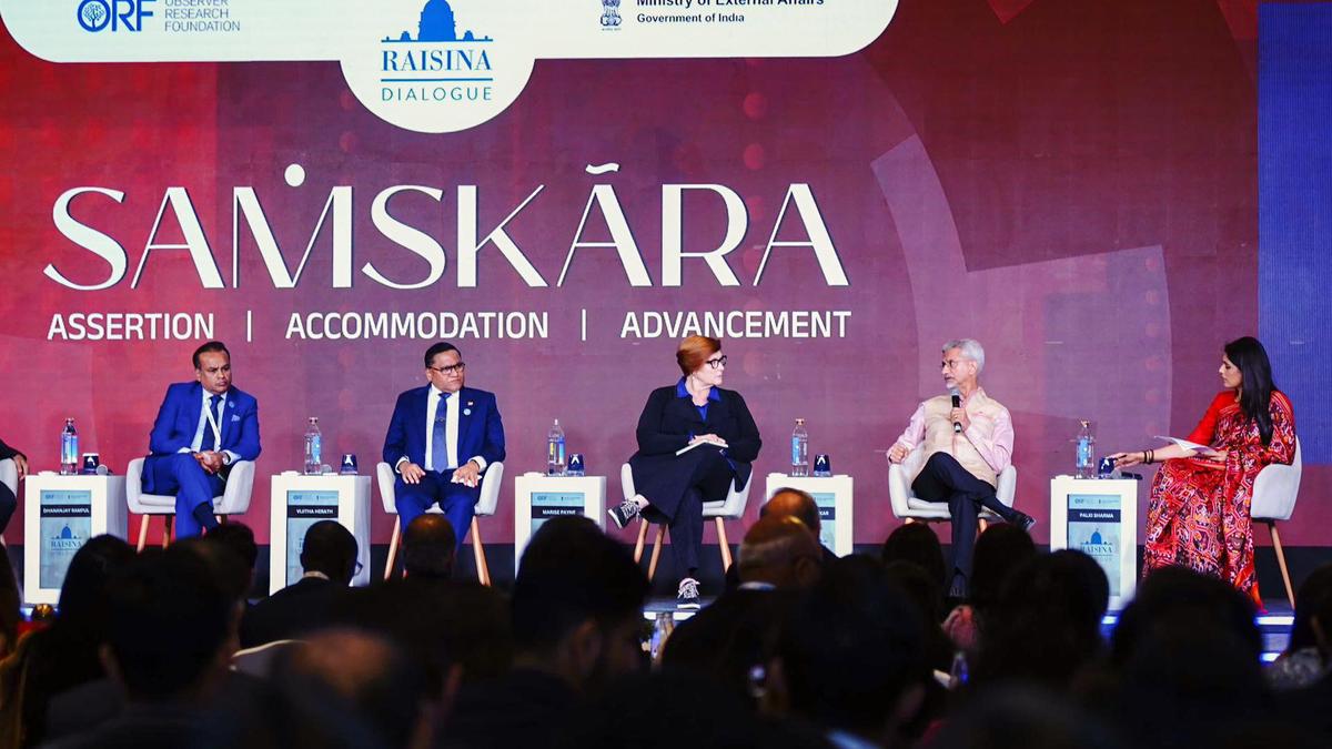 External Affairs Minister S. Jaishankar with Sri Lanka's Minister of Foreign Affairs Vijitha Herath, Mauritius' Minister of Foreign Affairs Dhananjay Ritish Ramful, and Australia's former Minister for Foreign Affairs Marise Payne during the session ‘Heart of the Seas: The Future of the Indian Ocean’ at Raisina Dialogue 2026, in New Delhi on March 7, 2026. Photo: @DrSJaishankar X/ANI Photo