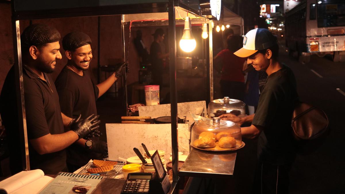 The street food platoon outside MG College at Kesavadasapuram, Thiruvananthapuram, resembles a buffet dinner that comes alive at dusk. From tangy, mouth-watering pani puris to piping hot waffles doused in chocolate sauce, this street serves flavours from all corners of the world. One eatery that catches your eye is Choco Bae, known for its continental dessert options, such as the Matilda cake — a decadent chocolate cake renowned for its moist texture and glossy finish, which owes its origins to a scene from the 1996 English film Matilda. Customers patiently line up outside the kiosk for this sweet street treat, as co-owner Bala Suresh carefully places slices on disposable plates. Matilda cake from Choco Bae | Photo Credit: SREEJITH R KUMAR Bala, 24, is part of a new wave of entrepreneurs in the city who, facing financial and logistical hurdles, choose to open small dessert stalls offering affordable dishes. A few months ago, his passion for sweets led him to open Choco Bae, despite limited funds. Treats such as brownies, cheesecakes, kunafa bowls, and others are available in the city starting from ₹39, thanks to outlets such as Postre Magic, Haps the Melting Happiness, and Wancho de Boc. “I opened a cloud kitchen at home because I had to invest only in an oven. Then, with the help of my friends and business partners, Sharavana Kumar and Fazil S, I launched a stall. Recently, we started a second stall at Palayam,” says Bala. Anandhu S started Wancho de Boc, also located near MG College, after he finished his MBA. His plan was to expand his mother’s home-baking business, which has been functioning since 2018. “In the long run, we wanted our own cafe. But before that we wanted to spread the word about our brand with this cart,” says Anandhu, who serves triple chocolate bananas, chocolate brownies, varieties of buns, and waffles. Wancho de Boc cart located near MG College | Photo Credit: SPECIAL ARRANGEMENT Husband-wife duo Nabeel AS and Afsana H opened Haps…, a dessert truck at Kulathoor, featuring Arabian desserts after observing the social media hype around sweets such as koshary and salankatia, two Egyptian desserts topped with pistachios and Nutella. “Initially, we couldn’t find a suitable space for our business. So, we decided to start a food truck,” says Nabeel. Their menu also includes qashtota (rice pudding with milk cake) and bamboza made with fresh fruits and nuts, available from ₹100. The dishes are available in 350 ml and 500 ml tubs. Scenes from Haps the Melting Happiness | Photo Credit: Nainu Oommen These carts are also for people who cannot afford to dine at cafes, say the owners. “The aim is to make dishes affordable for the public, thus allowing us to gauge the responses for our desserts across demographics,” says Akhila Suresh, one of the owners of Postre Magic, a dessert cart at Kuravankonam. Their menu features a variety of milk cakes, fruit tubs, cheesecakes, and so on. Akhila runs the kiosk with her husband, Murali Krishna. Murali Krishna at Postre Magic | Photo Credit: Nainu Oommen Some owners say they were inspired by the food cart culture in Tamil Nadu. Bala avers that he referred to the menus of several outlets in Coimbatore before he designed his own, to establish a profitable margin while maintaining a moderate price. These stalls mostly attract youngsters and families, which has to do with the location as well. Some of the outlets are located outside college campuses, which brings in the 18 to 24 age group. However, in the case of Haps… located near Technopark, the IT crowd is the main customer base, especially those who walk in after their shifts or breaks during late evenings and nights. This model of the dessert carts also allows the brands to build their identities outside their kiosks. For instance, Wancho de Boc is a constant collaborator with Gokulam Medical College, setting up stalls on their campus during the day. “We are also collaborating with other private companies in Technopark, selling our baked goods at their offices on specific days. We have a different menu for such occasions, which mostly comprises ready-to-eat desserts rather than sweets which require any preparation,” says Anandhu. Waffles being made at Wancho de Boc | Photo Credit: SREEJITH R KUMAR However, running these dessert kiosks comes with its own challenges especially when it rains heavily. They cannot open their kiosks which takes a toll on their returns. Earlier in October, the Thiruvananthapuram Municipal Corporation conducted a drive to remove street hawkers from illegally using carriageways and pavements. “It affected us a lot for a few days. While we were able to set up the stall again as we met their hygiene standards and space restrictions, many people think the street food places are completely shut down,” says Bala. He adds, “ At some point I want to set up my own cafe. These carts will still be there, but I want a place of my own.” Published – February 05, 2026 05:00 pm IST Share this: Click to share on WhatsApp (Opens in new window) WhatsApp Click to share on Facebook (Opens in new window) Facebook Click to share on Threads (Opens in new window) Threads Click to share on X (Opens in new window) X Click to share on Telegram (Opens in new window) Telegram Click to share on LinkedIn (Opens in new window) LinkedIn Click to share on Pinterest (Opens in new window) Pinterest Click to email a link to a friend (Opens in new window) Email More Click to print (Opens in new window) Print Click to share on Reddit (Opens in new window) Reddit Click to share on Tumblr (Opens in new window) Tumblr Click to share on Pocket (Opens in new window) Pocket Click to share on Mastodon (Opens in new window) Mastodon Click to share on Nextdoor (Opens in new window) Nextdoor Click to share on Bluesky (Opens in new window) Bluesky Like this:Like Loading... Post navigation Tirumala laddu adulteration a grave offence, says A.P. CM LIC Q3 profit rises 17% t