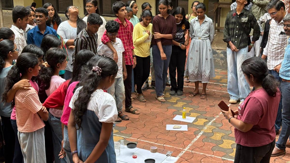 Zero Shadow Day phenomenon being explained at a science camp held at the Government College, Attingal, on Saturday | Photo Credit: Special arrangement The observation and study of the Zero Shadow Day phenomenon was among the highlights of a two-day Summer Science Camp that began at the Government College, Attingal, on Saturday. Shabnam Iyyani, a faculty member at the Indian Institute for Science Education and Research – Thiruvananthapuram (IISER Thiruvananthapuram), explained the scientific principles behind the event which occurs when the sun is positioned exactly overhead at noon, causing vertical objects to cast no shadow. Through guided experiments and outdoor observation, students actively participated in measuring and verifying the phenomenon, making it a hands-on learning experience. Published – April 11, 2026 08:49 pm IST Share this: Click to share on WhatsApp (Opens in new window) WhatsApp Click to share on Facebook (Opens in new window) Facebook Click to share on Threads (Opens in new window) Threads Click to share on X (Opens in new window) X Click to share on Telegram (Opens in new window) Telegram Click to share on LinkedIn (Opens in new window) LinkedIn Click to share on Pinterest (Opens in new window) Pinterest Click to email a link to a friend (Opens in new window) Email More Click to print (Opens in new window) Print Click to share on Reddit (Opens in new window) Reddit Click to share on Tumblr (Opens in new window) Tumblr Click to share on Pocket (Opens in new window) Pocket Click to share on Mastodon (Opens in new window) Mastodon Click to share on Nextdoor (Opens in new window) Nextdoor Click to share on Bluesky (Opens in new window) Bluesky Like this:Like Loading... Post navigation Hyderabad hosts national autism summit to strengthen care and inclusion KPCC leader condemns Kumaraswamy over remarks on Yathindra