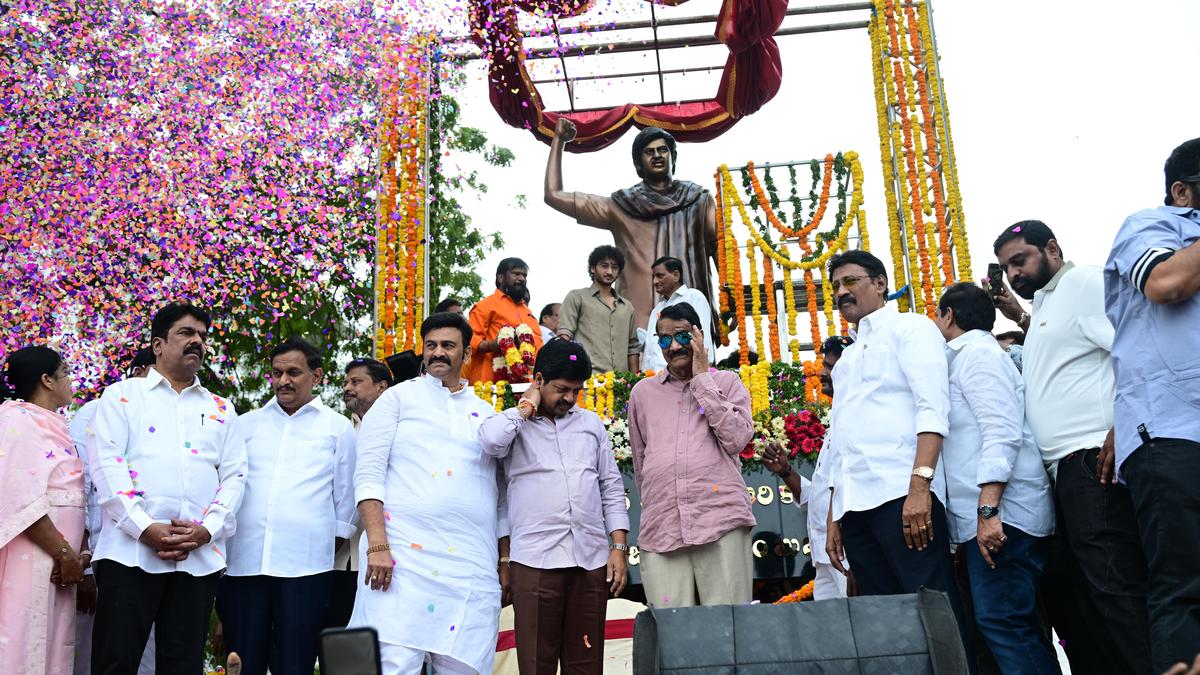 Minister Kollu Ravindra said Krishna was the pride of the Telugu people and would be remembered as long as the Telugu community existed. He described the installation of the statue in the heart of Vijayawada as a moment of pride and recalled Krishna’s close association with actors across generations.