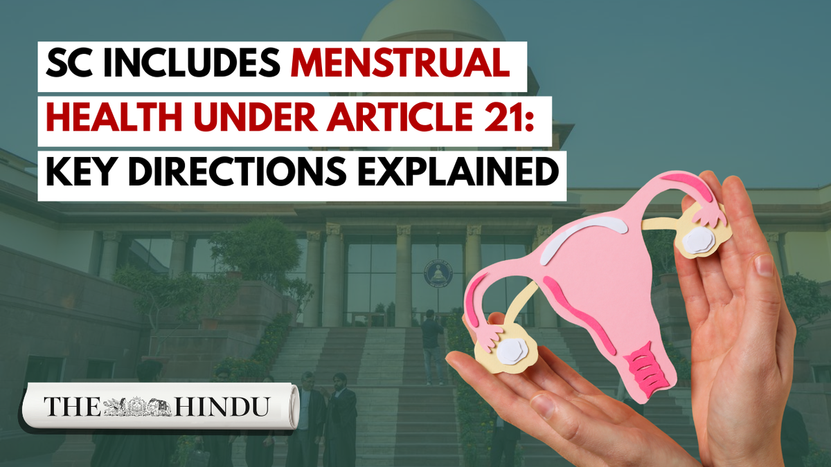 The Supreme Court has recognised menstrual health as a fundamental right under Article 21. The court directed all schools, government and private to provide separate toilets, clean water, free biodegradable sanitary pads, and safe disposal facilities. Schools must also set up menstrual hygiene corners with emergency supplies. The court said lack of such facilities affects students’ dignity, health, and access to education. It added that financial constraints cannot be used as an excuse for non‑compliance. Private schools may lose recognition if they fail to follow the guidelines.