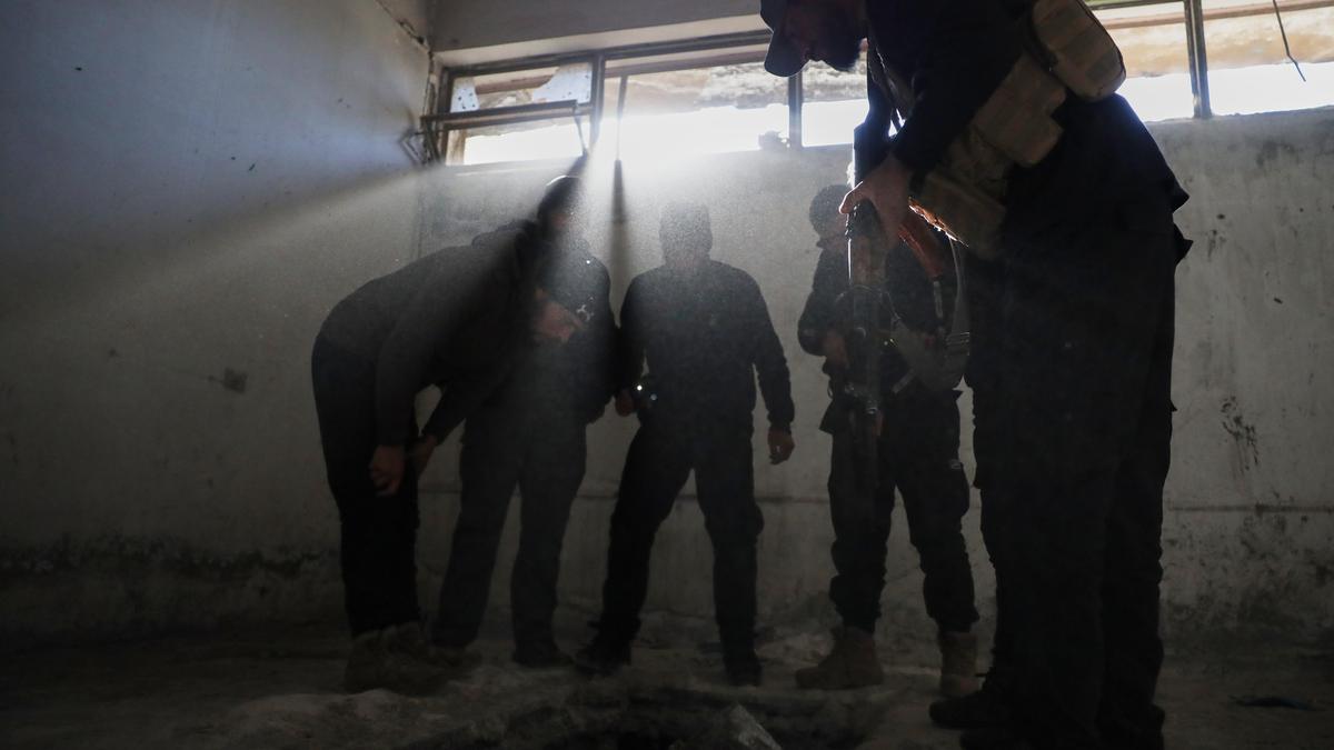 Syrian government security forces inspect tunnels used by the retreating Syrian Democratic Forces (SDF) in Raqqa, northeastern Syria, on January 20, 2026.