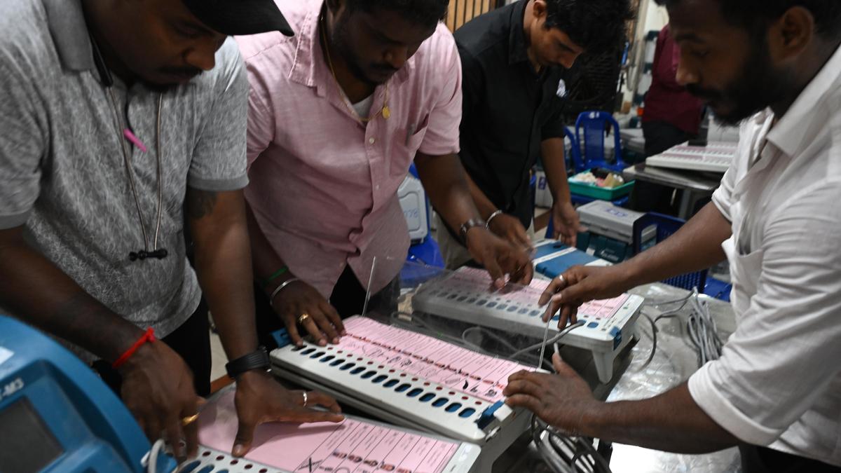 Election authorities getting the EVMs ready for the April 23 Assembly polls in the Dr. Radhakrishnan Nagar Assembly constituency in Chennai on Thursday. | Photo Credit: B. JOTHI RAMALINGAM Ahead of the Assembly election to be held in Tamil Nadu on April 23, the commissioning of Electronic Voting Machines (EVMs) and Voter Verified Paper Audit Trail (VVPAT) units for all constituencies began on Thursday, in the presence of candidates or their authorised representatives, as well as general observers, the Election Commission of India (ECI) said. “[The] Commissioning will be followed by a mock poll of 1,000 votes in 5% of the EVMs randomly selected by the candidates or their representatives. They will also be allowed to do the mock polls themselves,” an official release said. Published – April 16, 2026 10:47 pm IST Share this: Click to share on WhatsApp (Opens in new window) WhatsApp Click to share on Facebook (Opens in new window) Facebook Click to share on Threads (Opens in new window) Threads Click to share on X (Opens in new window) X Click to share on Telegram (Opens in new window) Telegram Click to share on LinkedIn (Opens in new window) LinkedIn Click to share on Pinterest (Opens in new window) Pinterest Click to email a link to a friend (Opens in new window) Email More Click to print (Opens in new window) Print Click to share on Reddit (Opens in new window) Reddit Click to share on Tumblr (Opens in new window) Tumblr Click to share on Pocket (Opens in new window) Pocket Click to share on Mastodon (Opens in new window) Mastodon Click to share on Nextdoor (Opens in new window) Nextdoor Click to share on Bluesky (Opens in new window) Bluesky Like this:Like Loading... Post navigation Ashok Leyland says ‘no slack in demand’ in Gulf markets; launches twin-fuel light commercial vehicles Safeguard for States with stable populations is being removed with immediate effect