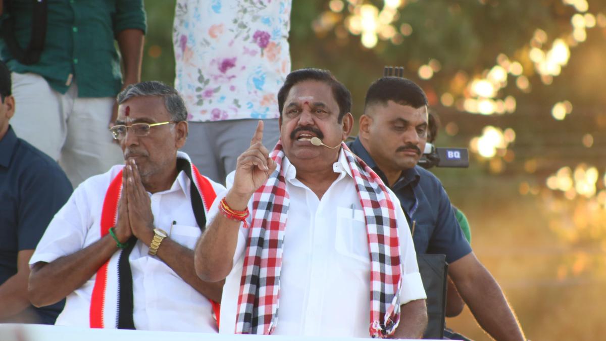 AIADMK general secretary Edappadi K. Palaniswami campaigning in Dharmapuri on Thursday. | Photo Credit: SPECIAL ARRANGEMENT AIADMK general secretary Edappadi K. Palaniswami assailed the DMK-led alliance at an election campaign meeting here on Thursday, dubbing it a “sad alliance” that had left the leaders of the parties in the front in “tears”. Alluding to Chief Minister M.K. Stalin’s comments that the AIADMK had pledged itself with the BJP, Mr. Palaniswami said the AIADMK had never pledged itself in the past nor would it do so with anyone at any point in the future, “quite unlike the DMK that had been a slave of the Congress”. While the DMK struggled at seat-sharing with its alliance partners, who had travelled with the party for more than a decade, the AIADMK had discussed and finalised its seat-sharing in two hours. “We had announced that the AIADMK is leading the alliance, and the AIADMK is forming the government, and that EPS will be the Chief Minister,” he added. Asserting that the DMK is heading a “weak alliance”, Mr. Palaniswami said the same old parties had stuck together, except with fewer seats, and the only new party that had joined it was the DMDK, with a vote share of half-a-percent in the 2021 election. On the contrary, the AIADMK-led front and its constituents have a larger vote share. The DMK alliance, despite claiming to be an “alliance of principle”, was one that had parties with discontentment. “The VCK is fighting alone in Puducherry, while the Congress and the Communists are fighting each other in Kerala,” he said. Campaigning in Dharmapuri, Mr. Palaniswami said the constituency is a fortress of the AIADMK that defeated the DMK in 2021. “You gave us the biggest victory even in 2021. But now, after five years of ‘anti-people rule’ marked by protests from various sections, it was for the people now to ensure that the DMK lost its deposit.” Rising debt Mr. Palaniswami also alleged that the Stalin-led government had ensured the State had surpassed all the other States in the quantum of debts it had piled up in the last five years. He hit out at the Chief Minister over claims of women’s safety in the State. “It was not the Opposition, but the government’s own statistics that has reported a high number of crimes against women and children.” He listed the promises the DMK had failed to keep. “There were five lakh vacancies in government departments, which included one lakh posts caused by retirement. Of these, only 94,000 vacancies were filled,” Mr. Palaniswami added. Mr. Palaniswami also alleged that the Stalin-led government had ensured the State had surpassed all the other States in the quantum of debts it had piled up in the last five years. He hit out at the Chief Minister over claims of women’s safety in the State. “It was not the Opposition, but the government’s own statistics that has reported a high number of crimes against women and children.” He listed the promises the DMK had failed to keep. “There were five-lakh vacancies in government departments, which included one lakh posts caused by retirement. Of these, only 94,000 vacancies were filled,” Mr. Palaniswami said. Published – April 03, 2026 12:48 am IST Share this: Click to share on WhatsApp (Opens in new window) WhatsApp Click to share on Facebook (Opens in new window) Facebook Click to share on Threads (Opens in new window) Threads Click to share on X (Opens in new window) X Click to share on Telegram (Opens in new window) Telegram Click to share on LinkedIn (Opens in new window) LinkedIn Click to share on Pinterest (Opens in new window) Pinterest Click to email a link to a friend (Opens in new window) Email More Click to print (Opens in new window) Print Click to share on Reddit (Opens in new window) Reddit Click to share on Tumblr (Opens in new window) Tumblr Click to share on Pocket (Opens in new window) Pocket Click to share on Mastodon (Opens in new window) Mastodon Click to share on Nextdoor (Opens in new window) Nextdoor Click to share on Bluesky (Opens in new window) Bluesky Like this:Like Loading... Post navigation Fire in building near Anna Salai destroys automobile spare parts Sholinghur: Residents seek better roads, want govt. to set up godowns to store sugarcane crop