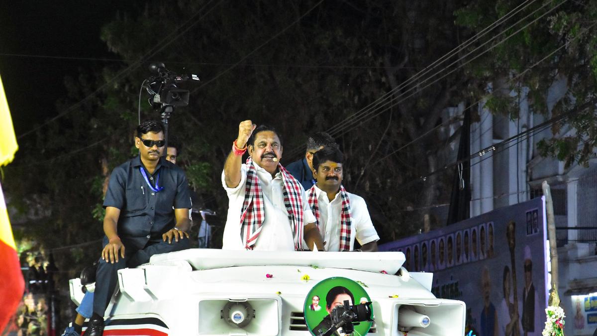 AIADMK general secretary Edappadi K. Palaniswami speaking at a campaign in Pudukottai on Wednesday.