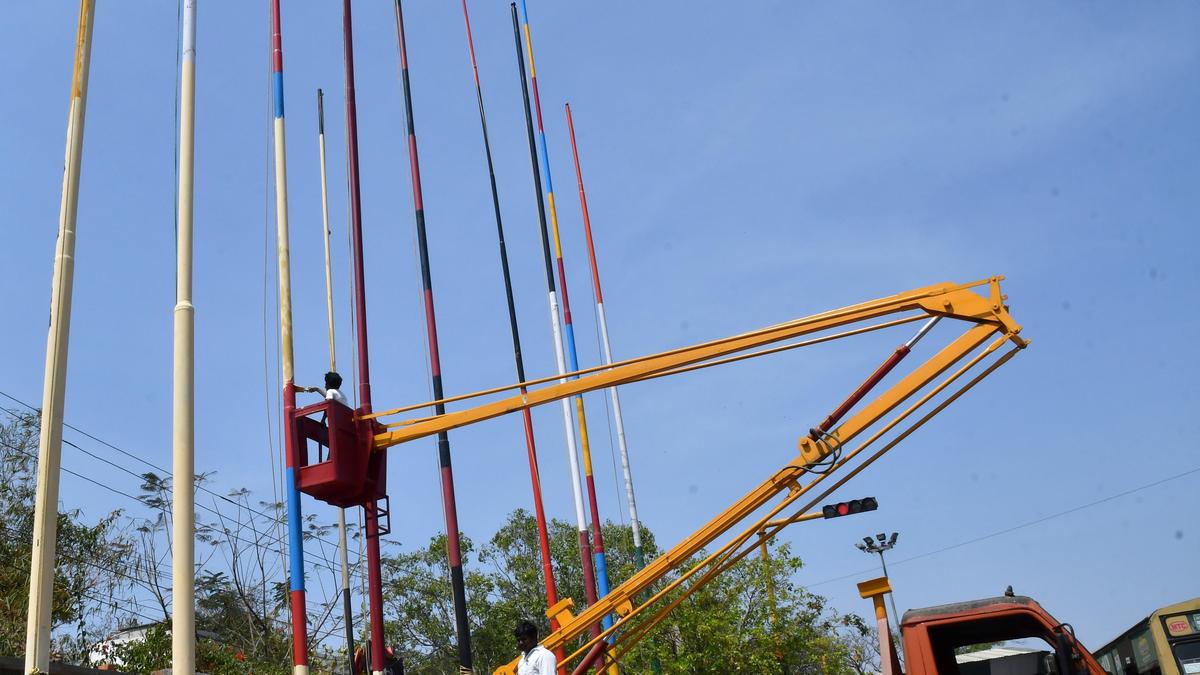 A rental fee of ₹10 per flagpole has been fixed for each event. Permissions are restricted to a maximum of three days for non-religious events and seven days for religious functions. | Photo Credit: File photo As the elections to the State Assembly are imminent and political parties get ready for campaigns, the Greater Chennai Corporation (GCC) has introduced a comprehensive regulatory framework for erecting temporary flagpoles across the city. Based on a government order dated September 16, 2025, and a subsequent directive dated January 20, 2026, the civic body has established 15 zonal-level sub-committees to monitor and approve these installations, according to a press release. Each sub-committee is chaired by the Zonal Assistant Commissioner and comprises officials from various departments, including the Revenue Department, the Tamil Nadu Police, the Public Works Department, and the Highways Department. Technical representation would be provided by the Tamil Nadu Generation and Distribution Corporation (TANGEDCO) and the Chennai Metropolitan Water Supply and Sewerage Board (CMWSSB) to ensure installations do not interfere with essential utilities, the release stated. Under the new procedure, any individual, political party, or religious organisation planning to erect temporary flagpoles for events such as conferences, election campaigns, processions, or festivals must apply through the corporation’s website. Applications must be submitted at least seven days prior to the event, detailing the number of poles, their height, material used, and the specific locations. A rental fee of ₹10 per flagpole has been fixed for each event. Permissions are restricted to a maximum of three days for non-religious events and seven days for religious functions. The guidelines stipulate that flagpoles must not be erected on the bitumen surface of roads and must be positioned at least three metres from the edge of the carriage way. These structures are restricted to a maximum height of 3.5 metres from ground level and must be buried at least one metre deep. To prevent electrical hazards, the poles must be made of non-conductive materials or properly insulated, especially when positioned near low or high-tension power lines. Organisers are to be held solely responsible for any “untoward incident” or accidents caused by the structures and must bear any costs related to criminal liability or compensation for affected individuals. Furthermore, event organisers are required to restore public infrastructure, such as pavements and storm water drains, to their original condition at their own expense. The Corporation warned that any unauthorised poles or those not removed immediately after the permitted duration will be cleared by the authorities, with the recovery of costs from the organisers. Published – February 01, 2026 07:40 am IST Share this: Click to share on WhatsApp (Opens in new window) WhatsApp Click to share on Facebook (Opens in new window) Facebook Click to share on Threads (Opens in new window) Threads Click to share on X (Opens in new window) X Click to share on Telegram (Opens in new window) Telegram Click to share on LinkedIn (Opens in new window) LinkedIn Click to share on Pinterest (Opens in new window) Pinterest Click to email a link to a friend (Opens in new window) Email More Click to print (Opens in new window) Print Click to share on Reddit (Opens in new window) Reddit Click to share on Tumblr (Opens in new window) Tumblr Click to share on Pocket (Opens in new window) Pocket Click to share on Mastodon (Opens in new window) Mastodon Click to share on Nextdoor (Opens in new window) Nextdoor Click to share on Bluesky (Opens in new window) Bluesky Like this:Like Loading... Post navigation Future of work: India’s youth under the new Codes Firing outside film maker Rohit Shetty’s Mumbai residence, probe launched