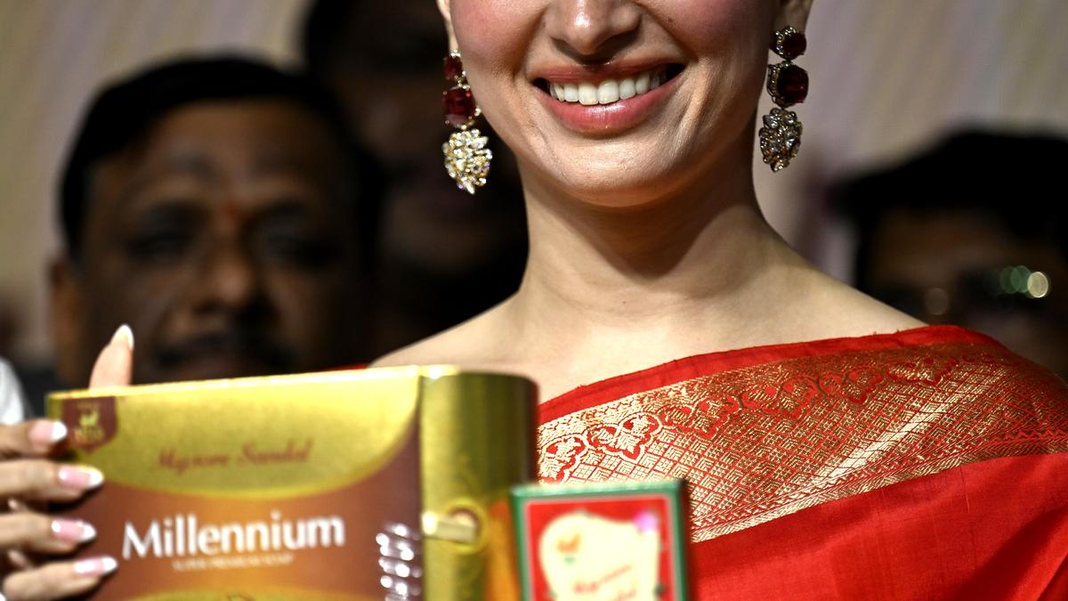 Actor Tamannaah Bhatia unveiling new products of KSDL under its flagship brand Mysuru Sandal in Bengaluru on Tuesday.