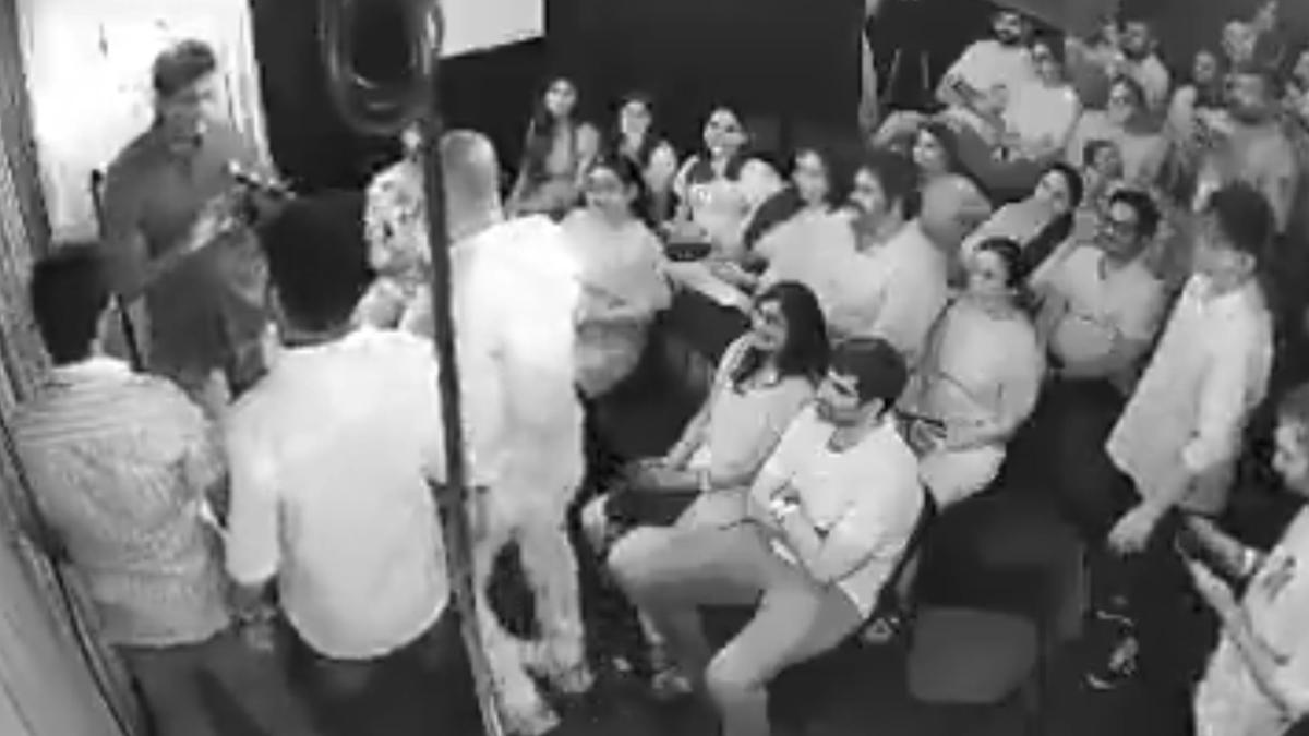 A screengrab from a video circulating on social media shows comedian Sarat Uday’s stand-up show being disrupted at a venue in Bengaluru on April 25. | Image: Video screengrab