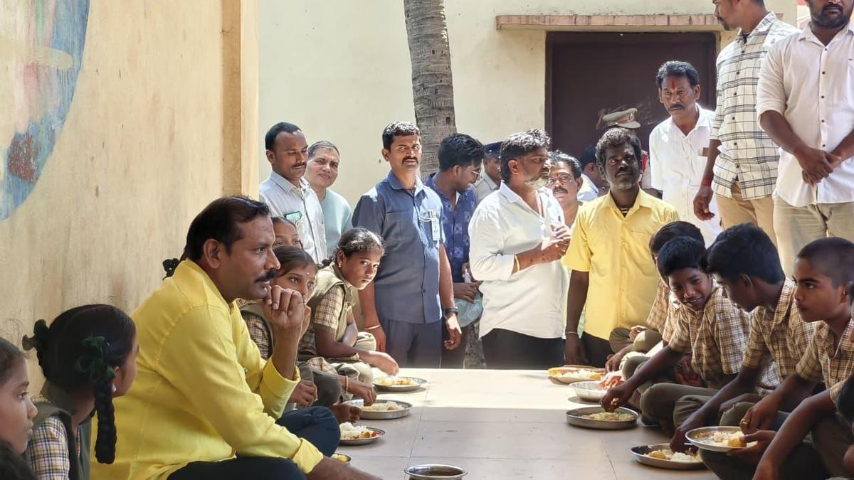 TDP State president and Gajuwaka MLA Palla Srinivasa Rao shares mid-day meals with students of the Government High School at Gangavaram during a surprise inspection, in Visakhapatnam on Thursday. | Photo Credit: BY ARRANGEMENT TDP State president and Gajuwaka MLA Palla Srinivasa Rao on Thursday conducted a surprise inspection at the Government High School in his constituency, Gangavaram, to assess the teaching standards and quality of meals being served to the students. Mr. Srinivasa ate the mid-day meal to evaluate its quality. He interacted with students, and took their feedback on the food served and issues they faced. He advised them to promptly inform teachers and parents in case of any lapses in the quality of meals provided. Addressing the school staff, Mr. Srinivasa said that any negligence concerning the health of students’ would not be tolerated under any circumstances. He mandated that a teacher be designated to inspect the meal after it is prepared daily to ensure its quality before serving it to students. The MLA stressed the need for sustained and vigilant monitoring of the mid-day meal scheme. In a bid to strengthen parental involvement, Mr. Srinivasa called for the compulsory use of the LEAP app, and urged parents to register their feedback and complaints regarding quality of meals through the platform. He further instructed officials to institutionalise periodic feedback collection from parents via the IVRS system. The MLA warned that any instance of negligence or dereliction of duty would invite stringent action against those responsible. Mr. Srinivasa also reviewed the quality of teaching, students attendance records, infrastructure, and sanitation within the school premises. He urged teachers to ensure that every student receives quality education. Published – April 02, 2026 07:47 pm IST Share this: Click to share on WhatsApp (Opens in new window) WhatsApp Click to share on Facebook (Opens in new window) Facebook Click to share on Threads (Opens in new window) Threads Click to share on X (Opens in new window) X Click to share on Telegram (Opens in new window) Telegram Click to share on LinkedIn (Opens in new window) LinkedIn Click to share on Pinterest (Opens in new window) Pinterest Click to email a link to a friend (Opens in new window) Email More Click to print (Opens in new window) Print Click to share on Reddit (Opens in new window) Reddit Click to share on Tumblr (Opens in new window) Tumblr Click to share on Pocket (Opens in new window) Pocket Click to share on Mastodon (Opens in new window) Mastodon Click to share on Nextdoor (Opens in new window) Nextdoor Click to share on Bluesky (Opens in new window) Bluesky Like this:Like Loading... Post navigation Regular drinking water supply, streetlights on State highway, and bifurcating Mettur taluk are prominent demands in this constituency Students of PES, Mandya, secure international placements