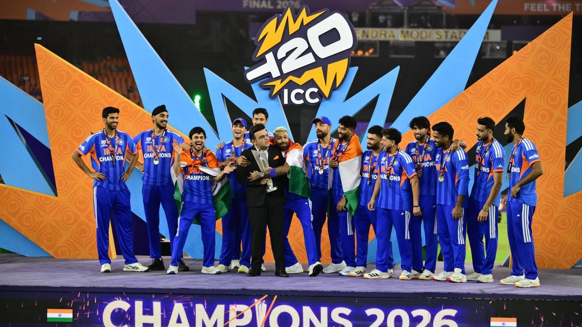 India won its third ICC T20 World Cup title with an emphatic win over New Zealand. | Photo Credit: Vijay Soneji Great teams have an air of inevitability when it comes to success. The Men in Blue, specifically in T20Is, exude that aura. The West Indies, cutting across formats in the 1970s and ’80s, and its successor Australia, all had this swagger backed by performance. When Suryakumar Yadav’s men claimed the ICC T20 World Cup at New Zealand’s expense at the Narendra Modi Stadium in Ahmedabad on Sunday, it seemed preordained. Such was India’s dominance. The host retained the title, previously won in 2024, and tided past the pressure of playing in the backyard as soaring expectations could at times choke. Including the latest conquest, cutting across ODIs and T20Is, India has won five World Cups, and three Champions Trophies. Additionally, nine Asia Cups and the 1985 World Championship of Cricket in Australia, were all secured. This triumphant run commenced in 1983 when Kapil Dev held aloft the World Cup at Lord’s. Yet, consistency in winning global trophies started only in 2024 as two T20 World Cups and a Champions Trophy have been seized since then. The latest successful effort was mounted on muscular batting and a bowling that had Jasprit Bumrah to step up all the time. Jasprit Bumrah was the go-to bowler for Suryakumar Yadav. | Photo Credit: Emmanual Yogini That India would get through the group stages and enter the Super Eight was a foregone conclusion. The more difficult part was in sustaining form in the knockout phase. Yes, the clash against Pakistan at Colombo had its own set of difficulties, primarily off the field due to complicated diplomacy and historical angst. But in all these encounters, India prevailed. South Africa offered a reality check, just like it did during the 2011 50-over World Cup. But then and now, the host moved ahead. This was a campaign in which opener Abhishek Sharma struggled for a large part despite two fifties, with one coming in the final. And Varun Chakaravarthy, who along with Bumrah, finished as the highest wicket-taker with 14 scalps each, had his lukewarm days too. Sanju Samson was in smashing form in the crunch games. | Photo Credit: Emmanual Yogini But India always marched on. Sanju Samson’s comeback atop the batting tree and his three consecutive 80-plus scores in the last three games, ensured that opening blues were no longer an issue. Ishan Kishan, Tilak Varma and Shivam Dube, all flexed their bats. Hardik Pandya, at times with runs, crucial wickets and bustling energy on the field, was critical to India’s propulsion. That men like Kishan and Axar Patel, would also be remembered for their fielding, is a reflection of how India ticked most of the boxes. India in the blue shade is in the ascendant. Hopefully there would be success in Tests too, an attribute that went missing as New Zealand and South Africa came visiting and left with series triumphs. It is one aspect that coach Gautam Gambhir has to address. Jammu and Kashmir winning the Ranji Trophy is another clue to how cricket’s roots have spread wide, and India is bound to benefit, even as the Indian Premier League saunters into view. Published – March 09, 2026 07:20 pm IST Share this: Click to share on WhatsApp (Opens in new window) WhatsApp Click to share on Facebook (Opens in new window) Facebook Click to share on Threads (Opens in new window) Threads Click to share on X (Opens in new window) X Click to share on Telegram (Opens in new window) Telegram Click to share on LinkedIn (Opens in new window) LinkedIn Click to share on Pinterest (Opens in new window) Pinterest Click to email a link to a friend (Opens in new window) Email More Click to print (Opens in new window) Print Click to share on Reddit (Opens in new window) Reddit Click to share on Tumblr (Opens in new window) Tumblr Click to share on Pocket (Opens in new window) Pocket Click to share on Mastodon (Opens in new window) Mastodon Click to share on Nextdoor (Opens in new window) Nextdoor Click to share on Bluesky (Opens in new window) Bluesky Like this:Like Loading... Post navigation Over 9,000 bicycles distributed to government school students in Prakasam district, says Minister Accused in Bilikere petrol bunk dacoity arrested
