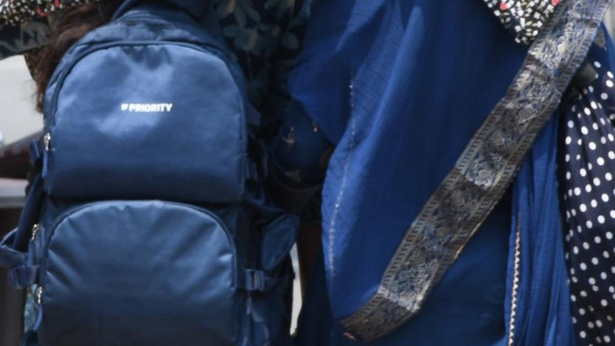 Two girls cover themselves with a chunni to escape the heat as temperatures soar at Sangareddy on Monday (April , 13 2026).