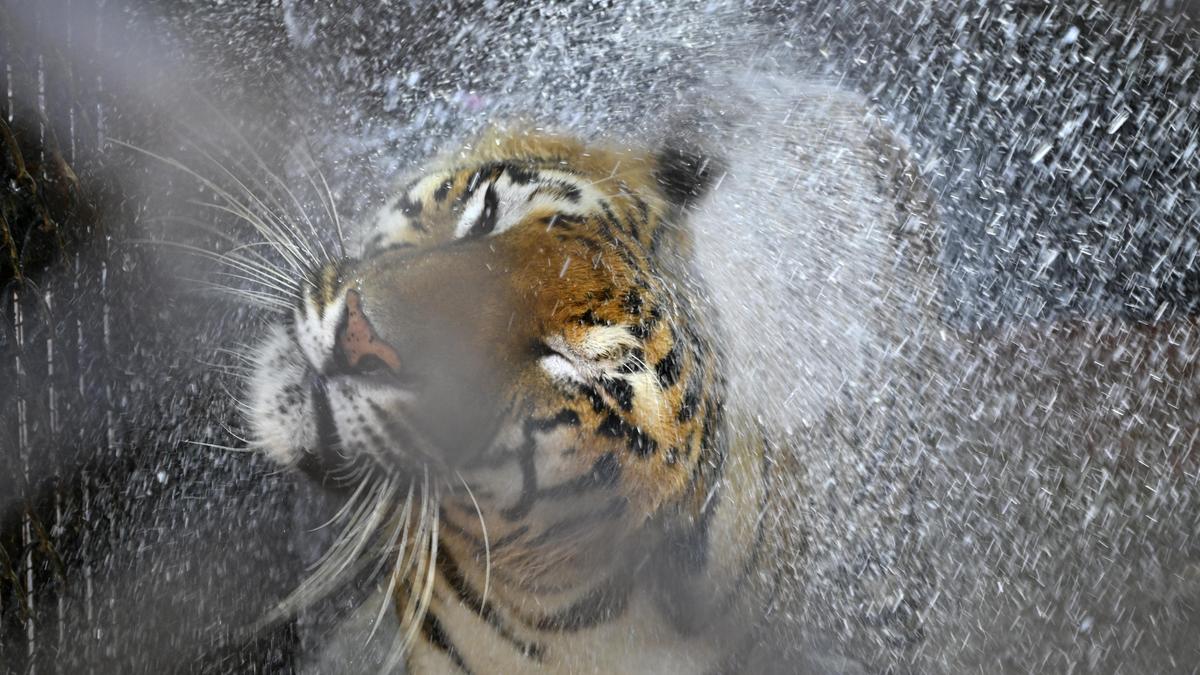 A Royal Bengal tiger cools off as water is sprinkled on it amid intense summer heat at Nehru Zoological Park in Hyderabad on Friday (April 24, 2026) | Photo Credit: NAGARA GOPAL Maximum temperatures continued tobr high across Telangana, with a total of six districts recording temperatures above 44℃ on Sunday (April 26, 2026). Data from the Telangana Development Planning Society (TGDPS) showed that another 16 districts recorded temperatures between 43℃ and 44℃, while the remaining 11 districts saw temperatures ranging between 42℃ and 43℃. Jainad in Adilabad district emerged as the hottest location in the State, recording a maximum temperature of 44.5℃. This was followed by 44.3℃ in Anumul Haliya (Nalgonda), Sarangapur (Nirmal), Kammarpally (Nizamabad), 44.1℃ in Dharmapuri (Jagtial), Kerameri (Kumaram Bheem Asifabad) and 44℃ in Sircilla (Rajanna Sircilla). Published – April 27, 2026 01:30 pm IST Share this: Click to share on WhatsApp (Opens in new window) WhatsApp Click to share on Facebook (Opens in new window) Facebook Click to share on Threads (Opens in new window) Threads Click to share on X (Opens in new window) X Click to share on Telegram (Opens in new window) Telegram Click to share on LinkedIn (Opens in new window) LinkedIn Click to share on Pinterest (Opens in new window) Pinterest Click to email a link to a friend (Opens in new window) Email More Click to print (Opens in new window) Print Click to share on Reddit (Opens in new window) Reddit Click to share on Tumblr (Opens in new window) Tumblr Click to share on Pocket (Opens in new window) Pocket Click to share on Mastodon (Opens in new window) Mastodon Click to share on Nextdoor (Opens in new window) Nextdoor Click to share on Bluesky (Opens in new window) Bluesky Like this:Like Loading... Post navigation Iran proposes to reopen Strait of Hormuz without nuclear agreement Tamil Nadu election 2026: Highest ever 88.56% voter turnout recorded in Tiruppur district