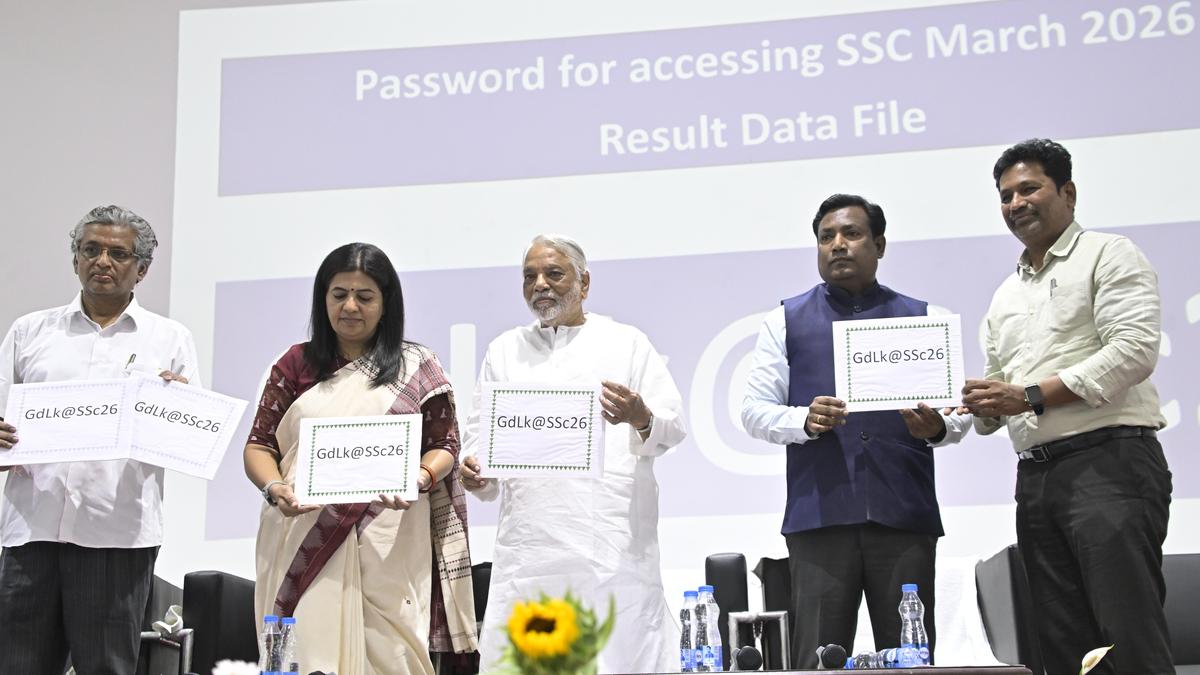 Telangana SSC results 2026 were released by Government Advisor K. Keshava Rao and Education Secretary Yogita Rana at State Council of Educational Research and Training in Hyderabad on Wednesday (April 29, 2026) | Photo Credit: SIDDHANT THAKUR The results of Secondary School Certificate (SSC) public examinations March-2026 were released by Telangana government’s Advisor (Public Affairs) K. Keshava Rao in Hyderabad on Wednesday (April 29, 2026) afternoon. A total of 5,21,166 candidates took the exams. The overall pass percentage of regular candidates was 95.15% .This was 92.78% in the previous academic year. Girl students (96.26%) outshone boys (94.07%). The results can be checked at https://bse.telangana.gov.in ; https://results.bse.telangana.gov.in ; https://schooledu.telangana.gov.in ; https://results.bsetelangana.org . Please can send a text ‘Hi’ to MeeSeva WhatsApp number 8096958096 and follow further prompts to check the results and receive marks memo over phone. Published – April 29, 2026 02:26 pm IST Share this: Click to share on WhatsApp (Opens in new window) WhatsApp Click to share on Facebook (Opens in new window) Facebook Click to share on Threads (Opens in new window) Threads Click to share on X (Opens in new window) X Click to share on Telegram (Opens in new window) Telegram Click to share on LinkedIn (Opens in new window) LinkedIn Click to share on Pinterest (Opens in new window) Pinterest Click to email a link to a friend (Opens in new window) Email More Click to print (Opens in new window) Print Click to share on Reddit (Opens in new window) Reddit Click to share on Tumblr (Opens in new window) Tumblr Click to share on Pocket (Opens in new window) Pocket Click to share on Mastodon (Opens in new window) Mastodon Click to share on Nextdoor (Opens in new window) Nextdoor Click to share on Bluesky (Opens in new window) Bluesky Like this:Like Loading... Post navigation West Bengal polls: PM Modi must resign when TMC wins, Derek O’Brien says Jharkhand Police arrest prime accused in West Singhbhum treasury-fraud case