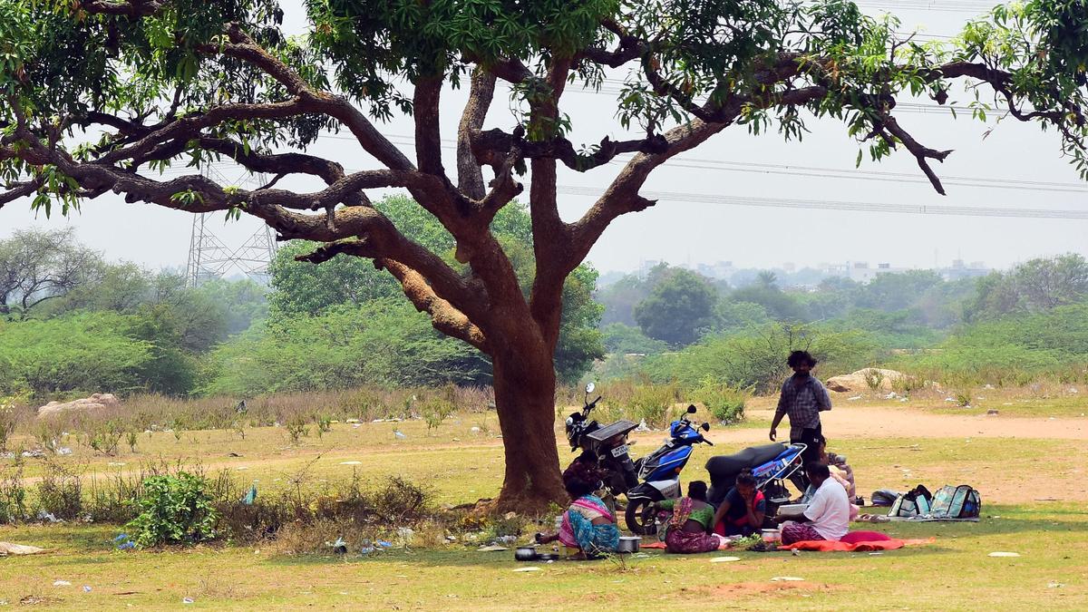 A family takes a break under shade of a tree on a hot afternoon, in Sangareddy district of Telangana on Thursday (April 16, 2026) | Photo Credit: MOHD ARIF Temperatures continue to soar in Telangana intensifying heatwave conditions as the highest was only a few decimals away from 45°C. The maximum temperature in all 33 districts was above 41°C, and over 44°C was recorded in 10 districts on Thursday (April 16, 2026). On Thursday, the highest of 44.4°C was recorded in Jagtial (Dharmapuri mandal). This was followed by 44.3°C in six districts — Adilabad (Bela mandal), Kumaram Bheem Asifabad (Bejjur), Mancherial (Jannaram),Nalgonda (Devarkonda), Nirmal(Nirmal Rural) and Nizamabad (Armur). And, 44.1°C was recorded in three districts — Kamareddy (Birkoor mandal), Karimnagar (Manakondur) and Siddipet (Bejjanki). The maximum temperature between 43°C and 44°C was recorded in 10 districts, according to Telangana Development Planning Society’s weather report issued on Friday. Published – April 17, 2026 01:31 pm IST Share this: Click to share on WhatsApp (Opens in new window) WhatsApp Click to share on Facebook (Opens in new window) Facebook Click to share on Threads (Opens in new window) Threads Click to share on X (Opens in new window) X Click to share on Telegram (Opens in new window) Telegram Click to share on LinkedIn (Opens in new window) LinkedIn Click to share on Pinterest (Opens in new window) Pinterest Click to email a link to a friend (Opens in new window) Email More Click to print (Opens in new window) Print Click to share on Reddit (Opens in new window) Reddit Click to share on Tumblr (Opens in new window) Tumblr Click to share on Pocket (Opens in new window) Pocket Click to share on Mastodon (Opens in new window) Mastodon Click to share on Nextdoor (Opens in new window) Nextdoor Click to share on Bluesky (Opens in new window) Bluesky Like this:Like Loading... Post navigation Adani overtakes Ambani to become Asia’s richest Vijayawada Police Commissioner distributes summer kits to traffic police personnel