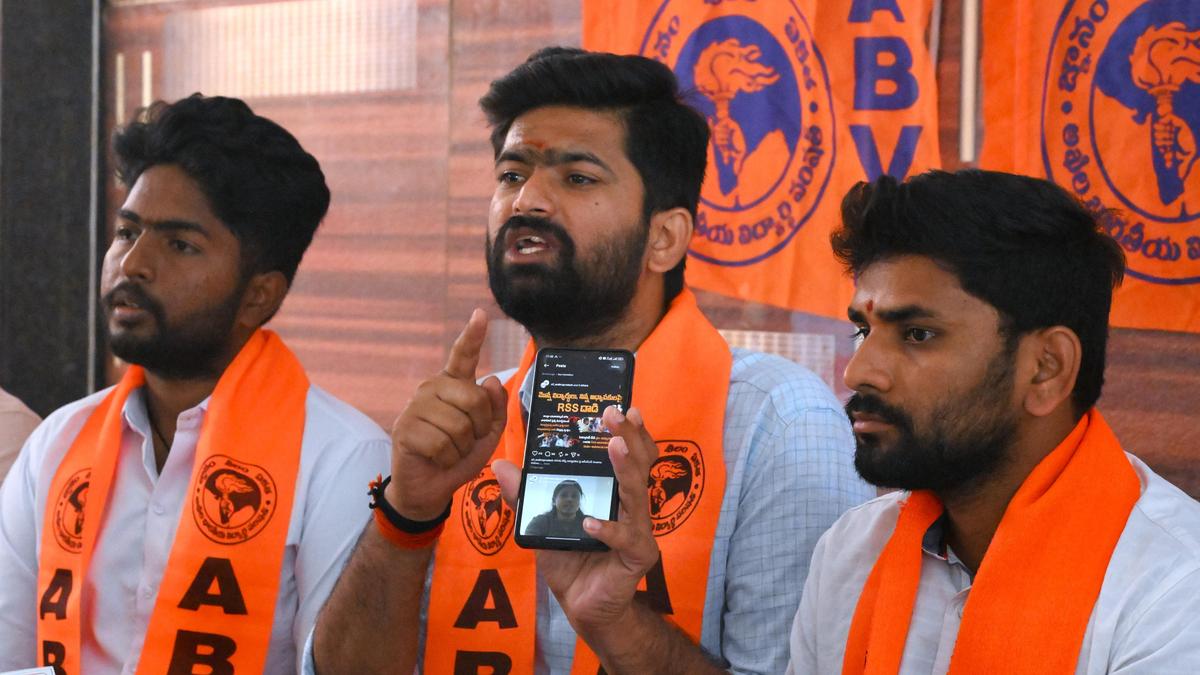 ABVP union leaders addressing a press conference in Visakhapatnam on Sunday. | Photo Credit: V. RAJU Tension has escalated at Andhra University with rival student organisations levelling serious allegations against each other and filing police complaints after a series of confrontations on the campus. SFI, AISF and other student union leaders addressing a press conference in Visakhapatnam on Sunday. | Photo Credit: V. RAJU While one section of students demanded the removal of alleged long-term squatters and action against what they described as biased professors, another group sought an immediate ban on religious activities within the academic premises. Both the Akhil Bharatiya Vidyarthi Parishad(ABVP) and the Students Federation of India(SFI) led organisations addressed separate press conferences on Sunday to present their versions of the incidents that have disturbed the campus since February 17. Addressing the media, ABVP State Secretary Venkata Gopi defended the presence of the Rashtriya Swayamsevak Sangh on the campus. He said Shakha activities have been conducted at Andhra University for the past 75 years with the permission of previous university authorities. He added that leaders such as former Vice President M. Venkaiah Naidu and Odisha Governor K. Haribabu had participated in such sessions during their student days. ABVP leaders alleged that SFI members carried out a pre-planned attack on nationalist students to divert attention from the high profile naval manoeuvres attended by President Droupadi Murmu in Visakhapatnam last week. ABVP National Executive member V. Kiran Kumar claimed that while their members practise Vande Mataram, certain SFI leaders were found consuming alcohol in hostels, as seen in videos circulated on social media. The ABVP also accused some professors of backing SFI and misusing religious sentiments to target university officials, including the Security Dean, who they said were acting against anti-social elements on the campus. Meanwhile, a joint front comprising SFI, AISF and PDSU demanded that the authorities ban RSS activities within the university premises. The student unions contended that University Grants Commission guidelines prohibit religious activities on university campuses. SFI State president Rammohan Rao alleged that on February 17, RSS members conducting what he described as a militaristic parade at the basketball grounds assaulted students who questioned their presence. The joint student leaders further alleged that outside elements entered the campus and damaged flags and poles belonging to SFI and CITU, even as prohibitory orders under Section 30 of the Police Act were in force. Published – February 22, 2026 06:43 pm IST Share this: Click to share on WhatsApp (Opens in new window) WhatsApp Click to share on Facebook (Opens in new window) Facebook Click to share on Threads (Opens in new window) Threads Click to share on X (Opens in new window) X Click to share on Telegram (Opens in new window) Telegram Click to share on LinkedIn (Opens in new window) LinkedIn Click to share on Pinterest (Opens in new window) Pinterest Click to email a link to a friend (Opens in new window) Email More Click to print (Opens in new window) Print Click to share on Reddit (Opens in new window) Reddit Click to share on Tumblr (Opens in new window) Tumblr Click to share on Pocket (Opens in new window) Pocket Click to share on Mastodon (Opens in new window) Mastodon Click to share on Nextdoor (Opens in new window) Nextdoor Click to share on Bluesky (Opens in new window) Bluesky Like this:Like Loading... Post navigation Special project launched to combat climate change challenges in agriculture : Minister Tributes paid to freedom fighter Narasimha Reddy on 175th death anniversary