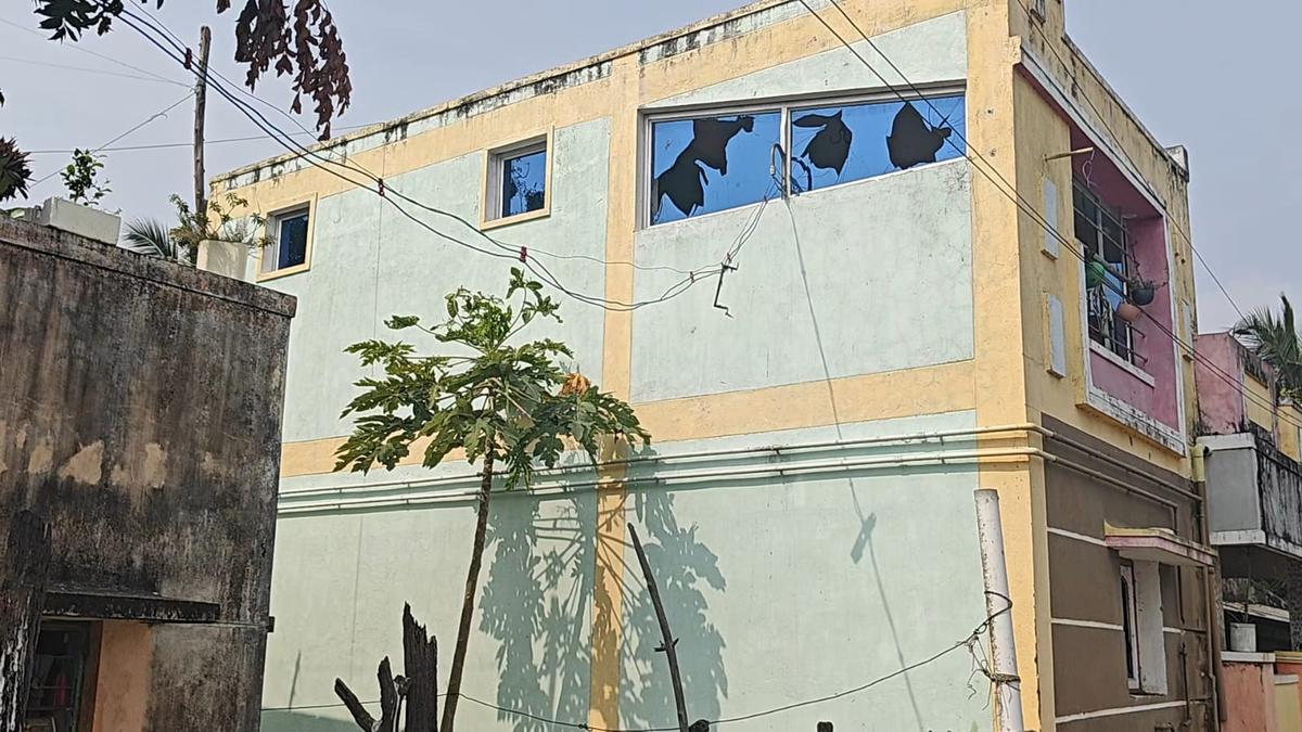 The windows of a house that were broken during the clashes near Kalpakkam on Monday.