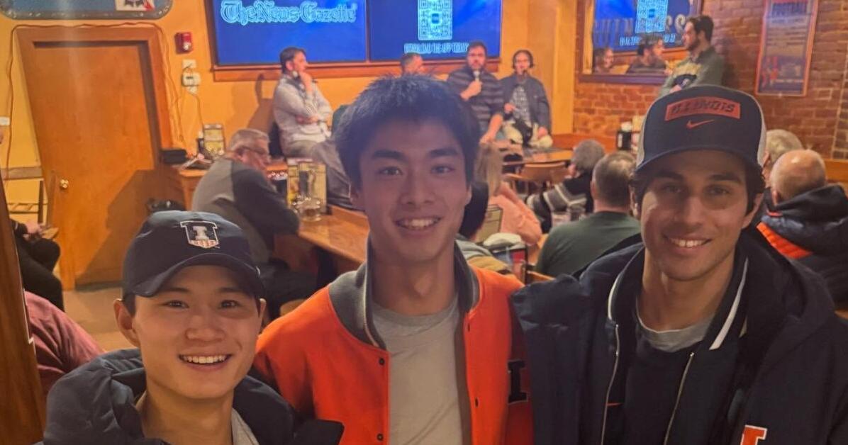 From left, Illinois men’s tennis players Jeremy Zhang, Kenta Miyoshi and Zach Viiala joined coach Brad Dancer on the air with News-Gazette sportswriters for ‘Monday Night SportsTalk,’ at the Esquire in downtown Champaign this past winter. On Thursday, Miyoshi was named the Big Ten Player of the Year.
