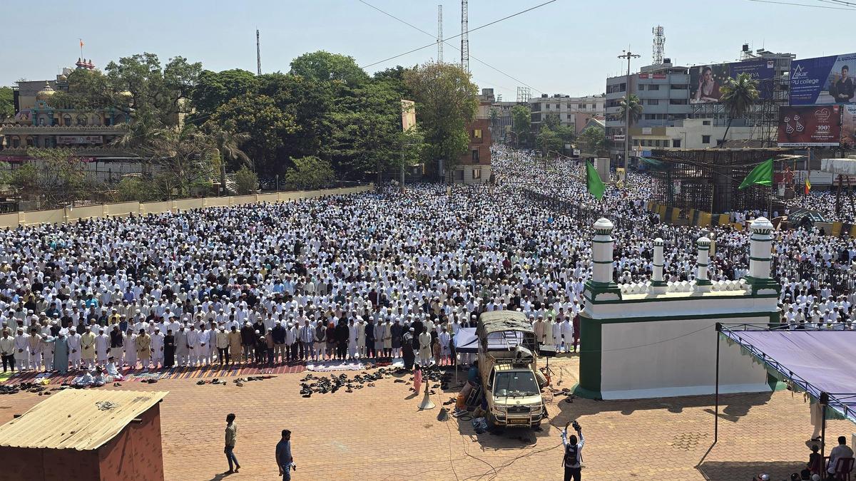 Devotees participating in the mass prayer organised to mark Id-ul-Fitr in Hubballi on Saturday. | Photo Credit: KIRAN BAKALE Having concluded the month-long fasting, members of the Muslim community came out in large numbers to participate in the mass prayer organised to mark Id-ul-Fitr in the districts of Dharwad, Gadag, Haveri, Uttara Kannada, and Davangere districts on Saturday. Rains in the last couple of days had brought down the soaring temperature, resulting in more number of people coming out to participate in the mass prayers. In most places In fact, the crowds spilled over to the adjoining roads and as per custom, Muslim religious heads delivered sermons after conducting mass prayers. At the conclusion of the mass prayers, several non-Muslim leaders reached the Idgah Maidans in their respective towns and cities to exchange Id greetings with the Muslim brethren. At the Idgah Maidan, adjacent to Kittur Chennamma Circle in Hubballi, where flyover work is under way, the municipal authorities have taken steps to keep the Area tidy, where thousands offer namaz. The other Idgah Maidan in Old Hubballi too witnessed a huge congregation. Prominent among those who participated in the mass prayers were former Minister A.M. Hindasageri, the former Chairman of HDUDA Anwar Mudhol, Congress leaders Altaf Halwoor, Babajan Mudhol and office-bearers of Anjuman-e-Islam. After the namaz and exchange of greetings, devout Muslims performed zakat and gave donations to various mosque committees and also to alms seekers. In Hubballi and Dharwad, elaborate police bandobast was made, and restrictions were imposed on vehicular movement till the conclusion of the mass prayers. Police Commissioner N. Shashikumar personally monitored the situation. Seeking seer’s blessing As has been the practice, per the decades-old tradition, several Muslim leaders and office-bearers of Anjuman-e-Islam, led by its president A.M. Hindasageri, Altaf Halwoor, Yousuf Savanur, and others, visited Moorusavir Mutt in Hubballi to greet and seek blessings from the seer Gurusiddha Rajayogindra Swami. As the seer was not at the mutt, Mallikarjun Murugharajendra Swami of Murugha Mutt, Anandpur in Shivamogga district welcomed and greeted them. Siddhalinga Swami of Eradettina Mutt of Hubballi was present. Published – March 21, 2026 06:18 pm IST Share this: Click to share on WhatsApp (Opens in new window) WhatsApp Click to share on Facebook (Opens in new window) Facebook Click to share on Threads (Opens in new window) Threads Click to share on X (Opens in new window) X Click to share on Telegram (Opens in new window) Telegram Click to share on LinkedIn (Opens in new window) LinkedIn Click to share on Pinterest (Opens in new window) Pinterest Click to email a link to a friend (Opens in new window) Email More Click to print (Opens in new window) Print Click to share on Reddit (Opens in new window) Reddit Click to share on Tumblr (Opens in new window) Tumblr Click to share on Pocket (Opens in new window) Pocket Click to share on Mastodon (Opens in new window) Mastodon Click to share on Nextdoor (Opens in new window) Nextdoor Click to share on Bluesky (Opens in new window) Bluesky Like this:Like Loading... Post navigation Industrialist joins BJP in Visakhapatnam Environmental, citizen groups to stage protest over illegal felling of 46 trees