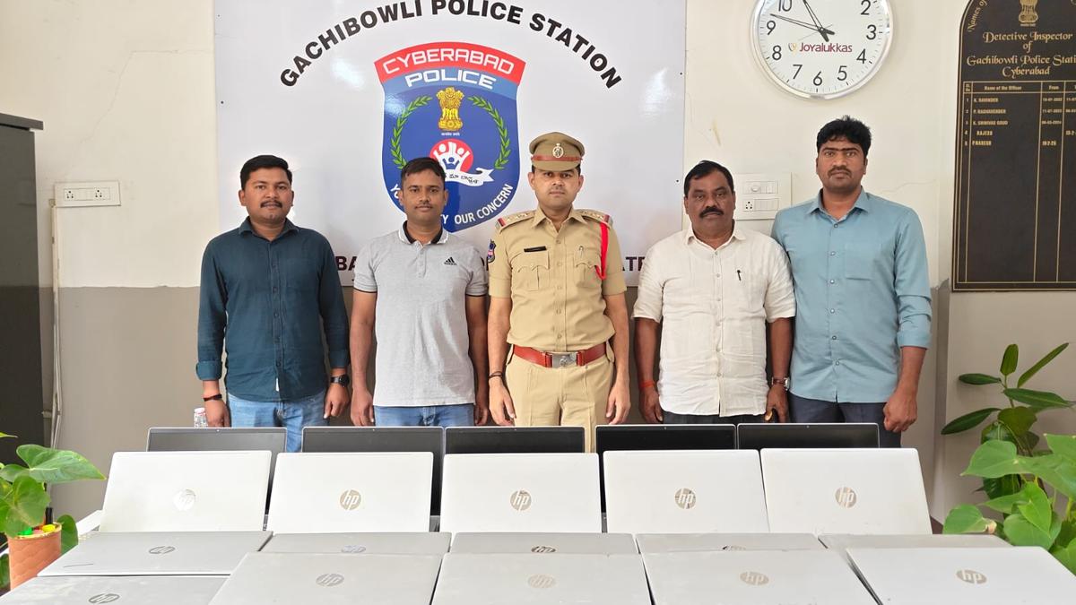 Gachibowli police staff along with the recovered laptops. | Photo Credit: By Arrangement The Gachibowli police have arrested three persons in connection with the theft of 60 laptops from the premises of C.R. Rao Advanced Institute of Mathematics, Statistics and Computer Science (AIMSCS) at the University of Hyderabad. The theft reportedly took place on Sunday night, and a case was registered on Monday (February 16) under relevant provisions of the Bharatiya Nyaya Sanhita (BNS). The accused were identified as 30-year-old Regula Chandra Shekar, a resident of Kukatpally and a native of Prakasam district in Andhra Pradesh, 19-year-old Sai Charan, a student, and 19-year-old Ashwin Rao, a student. According to the police, the accused were familiar with the campus layout and security patterns. They allegedly entered the premises unlawfully during late night hours and removed 60 laptops from the institute with the intention of selling them for wrongful gain. Police said all 60 laptops were recovered along with three mobile phones and two cars bearing registration numbers TS 15 FP 7697 and TG 11 C 3963. The seized property will be handed over to the concerned authorities after completion of legal formalities. The accused have been remanded to judicial custody. The investigation involved analysis of CCTV footage and technical evidence, and special teams were formed to trace and apprehend the suspects. Published – February 16, 2026 06:36 pm IST Share this: Click to share on WhatsApp (Opens in new window) WhatsApp Click to share on Facebook (Opens in new window) Facebook Click to share on Threads (Opens in new window) Threads Click to share on X (Opens in new window) X Click to share on Telegram (Opens in new window) Telegram Click to share on LinkedIn (Opens in new window) LinkedIn Click to share on Pinterest (Opens in new window) Pinterest Click to email a link to a friend (Opens in new window) Email More Click to print (Opens in new window) Print Click to share on Reddit (Opens in new window) Reddit Click to share on Tumblr (Opens in new window) Tumblr Click to share on Pocket (Opens in new window) Pocket Click to share on Mastodon (Opens in new window) Mastodon Click to share on Nextdoor (Opens in new window) Nextdoor Click to share on Bluesky (Opens in new window) Bluesky Like this:Like Loading... Post navigation Tamil Nadu: Farmers seek compensation for withered paddy Top news of the day February 16, 2026