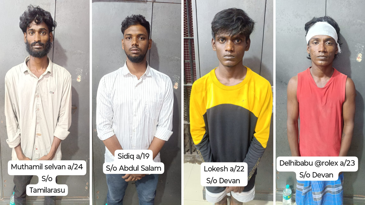 Police said Dillibabu, 23, of Vallur was initially apprehended in the case. After interrogating him, special teams arrested three absconding accused — Siddiq, 19, of Vallur; Lokesh, 22, of Vallur; and Muthamizh Selvan, 24, of Palamedu, Athipattu. All four were remanded to judicial custody.