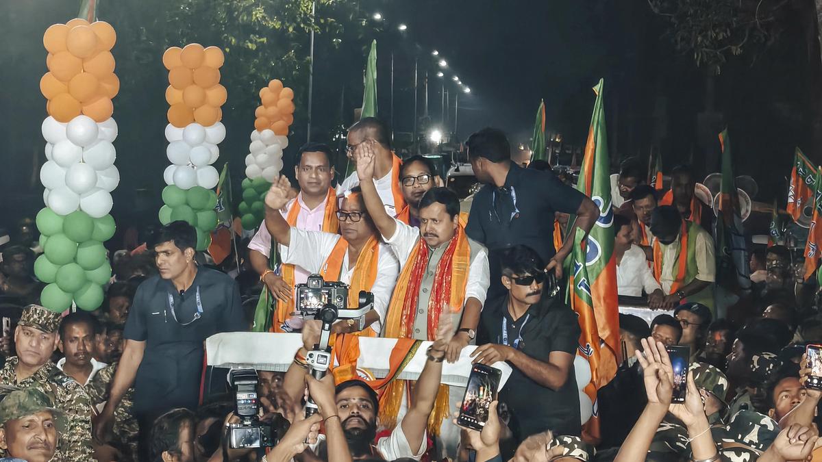 BJP leader Nitin Nabin during a roadshow as part of the election campaign ahead of the West Bengal Assembly elections, in Jalpaiguri district, on April 8, 2026.