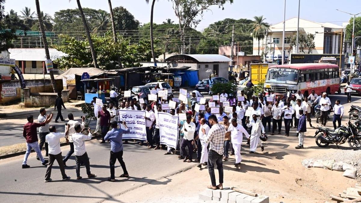 Tobacco farmers taking out a march to protest against the hike in duty on tobacco products in Periyapatna on January 5. | Photo Credit: Special Arrangement Tobacco growers of Karnataka, who took out a protest march in Periyapatna on January 5 and Hunsur on January 6 against the steep hike in duty imposed on tobacco products by the Centre, met Chief Minister Siddaramaiah in Mysuru on January 6 and urged him to write to the Centre to roll back the “excessive” increase in duty. The tobacco growers condemned the Union Finance Ministry’s recent notification of Chewing Tobacco, Jarda Scented Tobacco and Gutkha Packing machines (Capacity Determination and Collection of Duty) Rules 2026, which come into force from February 1. The growers, who had gathered under the aegis of Federation of Karnataka’s Virginia Flue Cured (VFC) Tobacco Growers’ Association, handed over a memorandum to the Periyapatna tahsildar on January 5 and Hunsur Assistant Commissioner on January 6. “We will hand over memorandums to MPs representing Mysuru, Mandya, Chamarajanagar and Hassan, which are tobacco growing regions in Karnataka,” the federation’s general secretary Vikram Raj Urs told The Hindu. The recent notification issued by the Centre announced the hike in duty on tobacco products from 53% to a whopping 82%, Mr. Urs claimed, adding that the new rules effectively impose an excise duty ranging from ₹2,050 to ₹8,500 per 1,000 sticks, depending on the length of the cigarette and its filter. The tobacco growers fear that the steep hike in duty will force domestic manufacturers to raise the prices of finished goods, which will in turn lead to a drop in sales and indirectly hurt the supplies from farmers. “This could cause a glut in the tobacco crop market in the near term,” the federation’s president H.G. Paramesh said in a statement. In the memorandum submitted to the Chief Minister, the federation said the tobacco crop earned a foreign exchange of ₹16,728 crore in 2024–25 while the livelihoods of tobacco farmers, agricultural labourers, warehouse workers, transporters and others employed in the domestic cigarette ecosystem depend on the stability of the domestic cigarette industry. “We are already suffering under the burden of an extremely high taxation rate on cigarettes (which use FCV tobacco) which on per kg basis is more than 50 times higher than beedis and more than 30 times higher than chewing tobacco, thereby unfairly penalising the VFC tobacco farmers,” the memorandum said. Apart from the drop in demand for domestic VFC tobacco leaf, the sharp rise in retail prices of cigarettes will lead the consumer to substitution by way of cheaper illicit cigarettes. The availability of smuggled cigarettes at a cheaper price will cause a revenue loss, the federation said. Published – January 06, 2026 07:17 pm IST Share this: Click to share on WhatsApp (Opens in new window) WhatsApp Click to share on Facebook (Opens in new window) Facebook Click to share on Threads (Opens in new window) Threads Click to share on X (Opens in new window) X Click to share on Telegram (Opens in new window) Telegram Click to share on LinkedIn (Opens in new window) LinkedIn Click to share on Pinterest (Opens in new window) Pinterest Click to email a link to a friend (Opens in new window) Email More Click to print (Opens in new window) Print Click to share on Reddit (Opens in new window) Reddit Click to share on Tumblr (Opens in new window) Tumblr Click to share on Pocket (Opens in new window) Pocket Click to share on Mastodon (Opens in new window) Mastodon Click to share on Nextdoor (Opens in new window) Nextdoor Click to share on Bluesky (Opens in new window) Bluesky Like this:Like Loading... Post navigation High-level Parliamentary Standing Committee visits Auroville Thrissur ready to host 64th State School Arts Festival from January 14