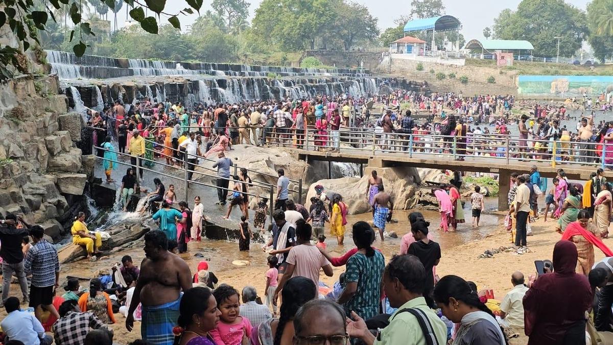People in large numbers thronged Kodiveri anicut in Erode district in Tamil Nadu on Saturday. | Photo Credit: Special Arrangement. Thousands of people thronged various tourist destinations across the district on the occasion of Kaanum Pongal on Saturday (January 17, 2026), amid elaborate security arrangements. Kaanum Pongal, which marks the conclusion of the Pongal festival, is traditionally observed as a day for meeting friends and relatives and visiting places of leisure. At the Kodiveri anicut, built across River Bhavani near Gobichettipalayam, hundreds of visitors gathered to take a bath and spend time at the adjoining park. With 100 cusecs of water released from the Bhavanisagar Dam into the river, people enjoyed the cascading water flow throughout the day. Visitors also queued up to take coracle rides at the anicut. Police personnel cautioned visitors to remain careful while moving over slippery rocks. Temporary shops set up within and outside the anicut premises selling snacks, ice creams, food items and fish fry witnessed brisk business. Tourists from various parts of the district and neighbouring districts arrived in large numbers, resulting in a shortage of parking space and traffic congestion on approach roads. Similarly, large crowds gathered at the park attached to the Bhavanisagar Dam, where families spent the day together. People also thronged the Karanampalayam check dam near Kodumudi, as well as the barrages at Vendipalayam and B.P. Agraharam in the city. To ensure that the celebrations passed off peacefully, over 400 police personnel were deployed at major tourist locations across the district. Published – January 17, 2026 06:15 pm IST Share this: Click to share on WhatsApp (Opens in new window) WhatsApp Click to share on Facebook (Opens in new window) Facebook Click to share on Threads (Opens in new window) Threads Click to share on X (Opens in new window) X Click to share on Telegram (Opens in new window) Telegram Click to share on LinkedIn (Opens in new window) LinkedIn Click to share on Pinterest (Opens in new window) Pinterest Click to email a link to a friend (Opens in new window) Email More Click to print (Opens in new window) Print Click to share on Reddit (Opens in new window) Reddit Click to share on Tumblr (Opens in new window) Tumblr Click to share on Pocket (Opens in new window) Pocket Click to share on Mastodon (Opens in new window) Mastodon Click to share on Nextdoor (Opens in new window) Nextdoor Click to share on Bluesky (Opens in new window) Bluesky Like this:Like Loading... Post navigation Footnotes from the Mahabharata highlights ‘sidelined voices’ of women in the epic Weekend boost extends Sankranti cheer in Vizianagaram, Srikakulam villages