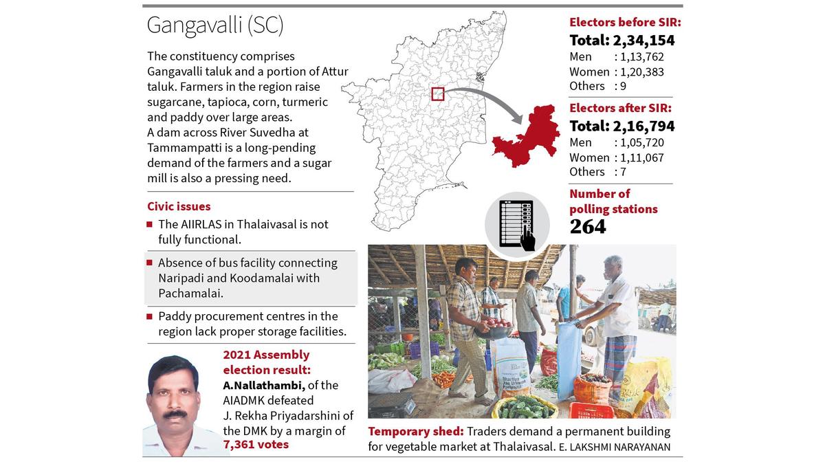The Gangavalli (SC) constituency, earlier known as Thalaivasal Assembly constituency, was formed in 2008 after delimitation. This constituency is situated 72 km from Salem Town and consists of Gangavalli taluk and a portion of Attur taluk. Considered an AIADMK stronghold, the party or its alliance have won in the last three elections (AIADMK- 2016, 2021; DMDK (alliance)- 2011) held after the formation of the constituency.