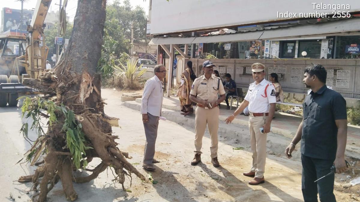 Hyderabad Traffic Police officials relocated an Ashoka tree near Satyan Petrol Pump in Trimulgherry on Tuesday to ease traffic congestion and ensure commuter safety. | Photo Credit: By Arrangement The Hyderabad Traffic Police relocated an Ashoka tree near Satyan Petrol Pump in Trimulgherry on December 31 to ease traffic congestion and ensure commuter safety, while preserving the city’s green cover. The tree had been obstructing the bus bay of the recently shifted bus stand, with its location and overgrown branches hindering smooth vehicular movement in the area. After obtaining necessary permissions from the authorities concerned, the decision to relocate the tree was taken instead of removing it. Acting on the instructions of Commissioner of Police V.C. Sajjanar and under the supervision of senior traffic officials, the tree was carefully shifted to the premises of the ITI College at Alwal with the assistance of relevant departments. Traffic police officials said the relocation has significantly improved traffic flow around the bus stand and reduced congestion at the junction. Steps will also be taken to ensure the healthy re-growth of the transplanted tree at its new location, underscoring the department’s effort to balance environmental protection with public safety and efficient traffic management. Published – January 01, 2026 01:11 pm IST Share this: Click to share on WhatsApp (Opens in new window) WhatsApp Click to share on Facebook (Opens in new window) Facebook Click to share on Threads (Opens in new window) Threads Click to share on X (Opens in new window) X Click to share on Telegram (Opens in new window) Telegram Click to share on LinkedIn (Opens in new window) LinkedIn Click to share on Pinterest (Opens in new window) Pinterest Click to email a link to a friend (Opens in new window) Email More Click to print (Opens in new window) Print Click to share on Reddit (Opens in new window) Reddit Click to share on Tumblr (Opens in new window) Tumblr Click to share on Pocket (Opens in new window) Pocket Click to share on Mastodon (Opens in new window) Mastodon Click to share on Nextdoor (Opens in new window) Nextdoor Click to share on Bluesky (Opens in new window) Bluesky Like this:Like Loading... Post navigation APERC approves true-up charges amounting to ₹4,498 crore Parking suspended temporarily at platform 1 of Secunderabad station