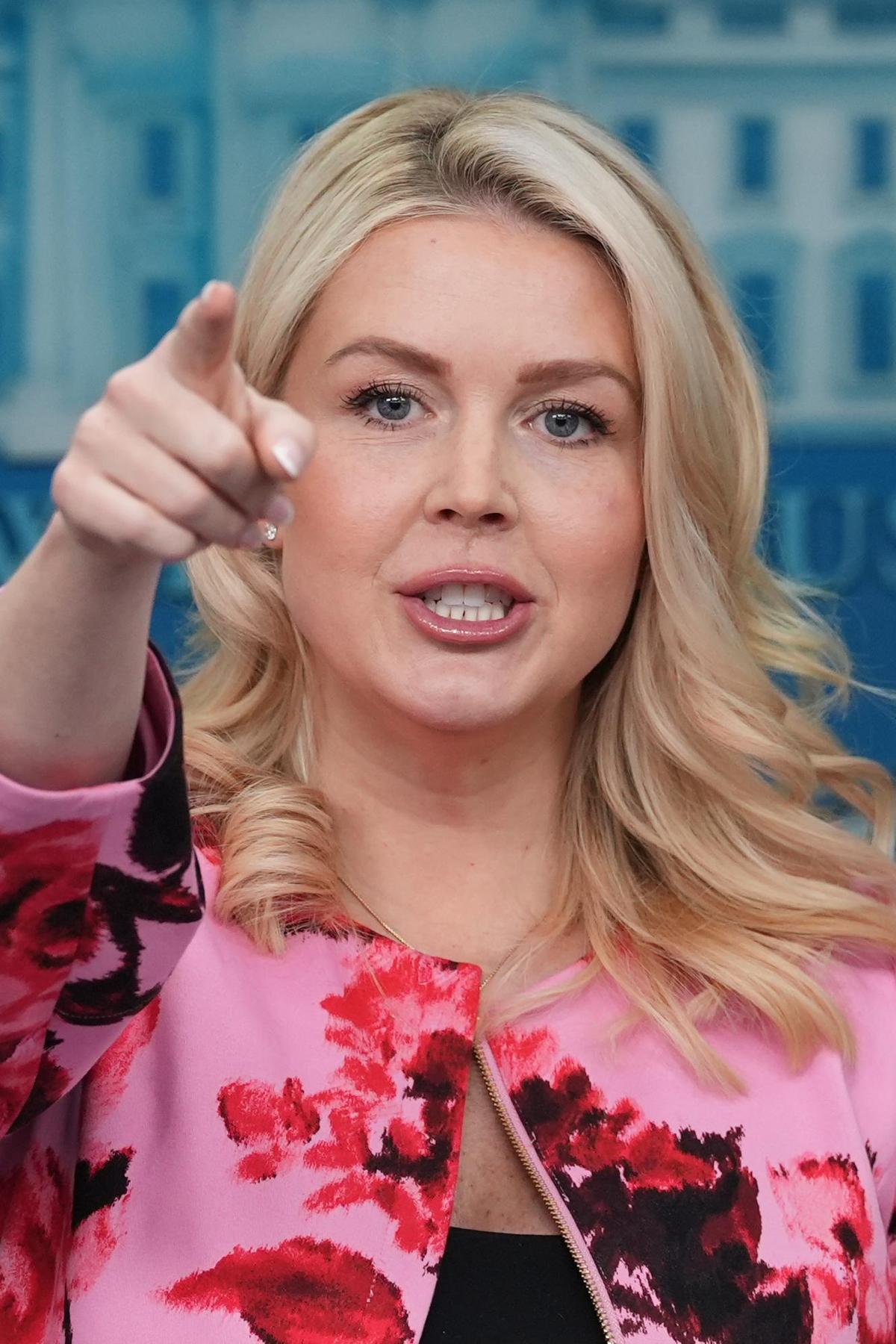Karoline Leavitt, White House press secretary, during a news conference in the James S. Brady Press Briefing Room of the White House in Washington, DC, US, on Monday, March 30, 2026. President Donald Trump repeated threats to destroy Iranian energy assets if the Strait of Hormuz isn’t reopened soon, raising fears the war could escalate after more American troops arrived in the region. Photographer: Aaron Schwartz/Bloomberg