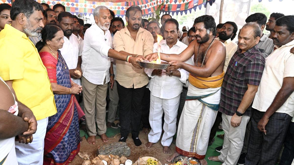 TUDA Chairman C. Divakar Reddy, MLAs Pulivarthi Nani (Chandragiri) and Arani Srinivasulu (Tirupati) performing ‘bhumi puja’ for the long-pending drinking water pipeline project at Mangalam in Tirupati on Thursday. | Photo Credit: K.V. Poornachandra Kumar The Tirupati Urban Development Authority (TUDA) on Thursday took up the pending works of the Telugu Ganga drinking water pipeline, a project that remained untouched for long time. The drinking water pipeline, measuring 2.9 km in length and 150 feet in width, runs underground from the RTO office in Mangalam southwards up to Renigunta road and further to Daminedu, abutting the Chennai highway. As the decades-old pipeline was laid in a zigzag manner, it needed to be shifted to facilitate the laying of a road to ensure planned development of the city. Even the TTD had allotted ₹19.5 crore for the road project in 2019, but the e shifting of the pipeline continued to be a bottleneck. Published – April 09, 2026 08:36 pm IST Share this: Click to share on WhatsApp (Opens in new window) WhatsApp Click to share on Facebook (Opens in new window) Facebook Click to share on Threads (Opens in new window) Threads Click to share on X (Opens in new window) X Click to share on Telegram (Opens in new window) Telegram Click to share on LinkedIn (Opens in new window) LinkedIn Click to share on Pinterest (Opens in new window) Pinterest Click to email a link to a friend (Opens in new window) Email More Click to print (Opens in new window) Print Click to share on Reddit (Opens in new window) Reddit Click to share on Tumblr (Opens in new window) Tumblr Click to share on Pocket (Opens in new window) Pocket Click to share on Mastodon (Opens in new window) Mastodon Click to share on Nextdoor (Opens in new window) Nextdoor Click to share on Bluesky (Opens in new window) Bluesky Like this:Like Loading... Post navigation BJP hastening with Women’s Reservation Bill only to deny quota for OBC women: Manickam Tagore Instead of monthly assistance to women, DMK Government should give jobs to youngsters: V. K. Sasikala