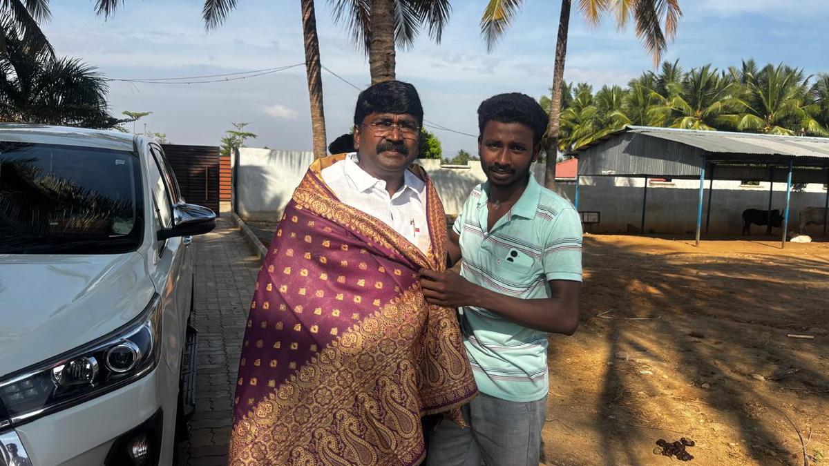 Veera Saminathan being presented a shawl by the accused Manikandan shortly before allegedly stabbing him | Photo Credit: Special Arrangement A DMK functionary and his supporter were allegedly stabbed by a party worker on Saturday (February 21, 2026). Preliminary inquiries revealed that the functionary, Veera Saminathan, is the party’s Vedasandur South union secretary. He was at his farmhouse and had planned to leave for Madurai to participate in Chief Minister’s M.K. Stalin’s event on Saturday. As he was getting ready, a youth, identified as Mani, alias Manikandan, from Eriodu, came to the farmhouse. Under the pretext of presenting a shawl to Mr. Saminathan, the youth pulled out a small knife hidden inside the shawl and stabbed him in the neck. When Nachimuthu, a supporter of Mr. Saminathan, attempted to stop the youth, he was also stabbed in the stomach. Both Mr. Saminathan and Mr. Nachimuthu were rushed to the Vedasandur Government Hospital and later referred to a private hospital for further treatment. Meanwhile, the police apprehended the suspect and seized the weapon used in the crime. DMK party sources in the district said that Mr. Saminathan has been working hard for the past two months in the region, with the aim of securing a ticket to contest the forthcoming Assembly election from the Vedasandur constituency. The Vedasandur police have registered a case and investigations are under way. Published – February 21, 2026 03:03 pm IST Share this: Click to share on WhatsApp (Opens in new window) WhatsApp Click to share on Facebook (Opens in new window) Facebook Click to share on Threads (Opens in new window) Threads Click to share on X (Opens in new window) X Click to share on Telegram (Opens in new window) Telegram Click to share on LinkedIn (Opens in new window) LinkedIn Click to share on Pinterest (Opens in new window) Pinterest Click to email a link to a friend (Opens in new window) Email More Click to print (Opens in new window) Print Click to share on Reddit (Opens in new window) Reddit Click to share on Tumblr (Opens in new window) Tumblr Click to share on Pocket (Opens in new window) Pocket Click to share on Mastodon (Opens in new window) Mastodon Click to share on Nextdoor (Opens in new window) Nextdoor Click to share on Bluesky (Opens in new window) Bluesky Like this:Like Loading... Post navigation Bangladesh moving towards restoring visa for Indian nationals: Diplomatic sources Watch: Stalled talks, rising tensions: U.S.–Iran crisis deepens