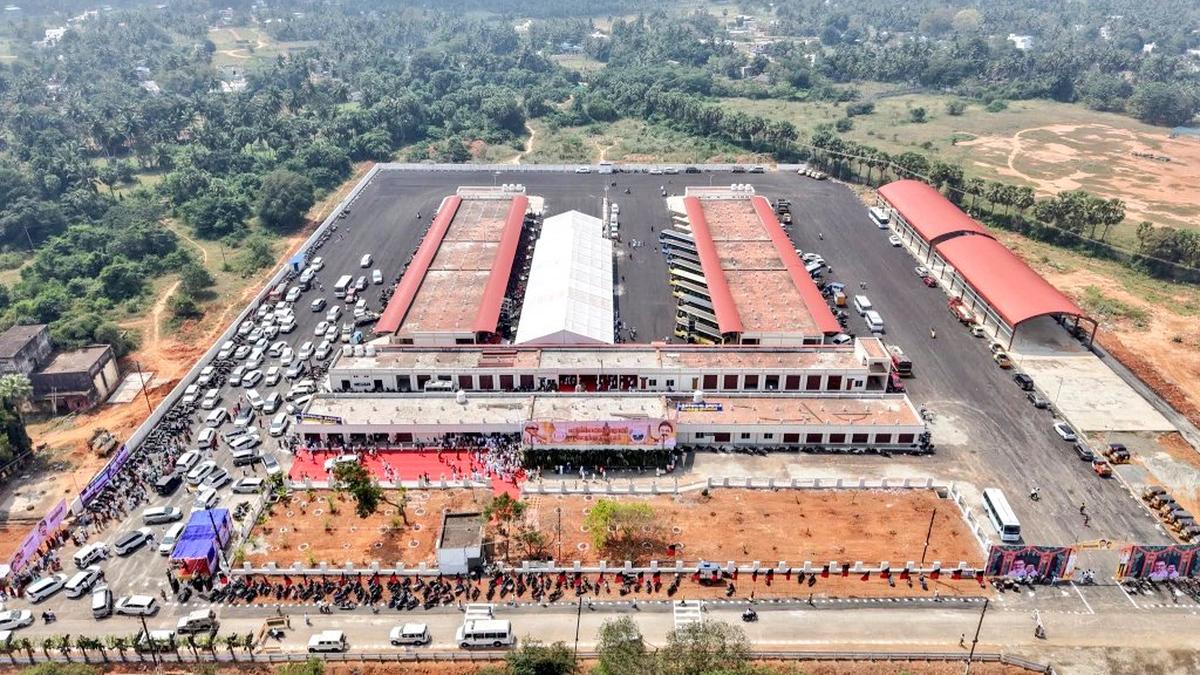 An aerial view of the bus stand built at a cost of ₹20 crore in Pattukkottai in Thanjavur district, which was inaugurated on Sunday.