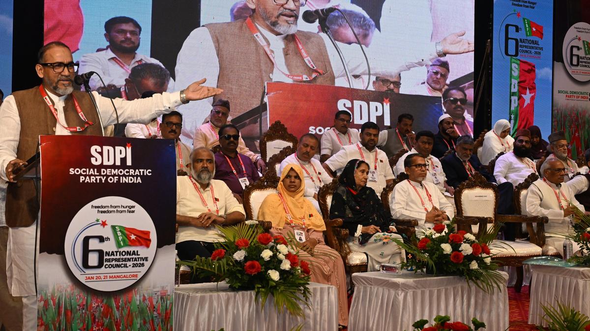 SDPI national vice president, Mohammad Shafi, speaking at the 6th National Representative Council (NRC) meeting of the Social Democratic Party of India (SDPI) at the Indiana Convention Hall in Mangaluru on Tuesday. | Photo Credit: H.S. MANJUNATH Calling the Union government ‘anti-people’, the National Vice-President of the Social Democratic Party of India (SDPI), Mohammad Shafi, alleged here on Tuesday that the BJP-led NDA government has failed to implement schemes to ensure housing and food security to people. Speaking at the inauguration of the two-day 6th National Representative Council meeting of the party, Mr. Shafi alleged that the Union government is only favouring capitalists and rolling out such schemes to enable capitalists to invest. He said that the country is facing a scarcity of pure drinking water, leading to many deaths. Poor people are not getting land to build houses. The government has been handing over national properties, such as airports, to capitalists to manage. Mr. Shafi also alleged that the Smart India programmes of the Union government are nothing but big scams. Many people have been kept out of voter’s list due to the Special Intensive Revision. The government’s note ban did not yield any result. Published – January 20, 2026 08:54 pm IST Share this: Click to share on WhatsApp (Opens in new window) WhatsApp Click to share on Facebook (Opens in new window) Facebook Click to share on Threads (Opens in new window) Threads Click to share on X (Opens in new window) X Click to share on Telegram (Opens in new window) Telegram Click to share on LinkedIn (Opens in new window) LinkedIn Click to share on Pinterest (Opens in new window) Pinterest Click to email a link to a friend (Opens in new window) Email More Click to print (Opens in new window) Print Click to share on Reddit (Opens in new window) Reddit Click to share on Tumblr (Opens in new window) Tumblr Click to share on Pocket (Opens in new window) Pocket Click to share on Mastodon (Opens in new window) Mastodon Click to share on Nextdoor (Opens in new window) Nextdoor Click to share on Bluesky (Opens in new window) Bluesky Like this:Like Loading... Post navigation State-of-the-art GIS power substation to come up in Lawspet UNRWA headquarters bulldozed in East Jerusalem