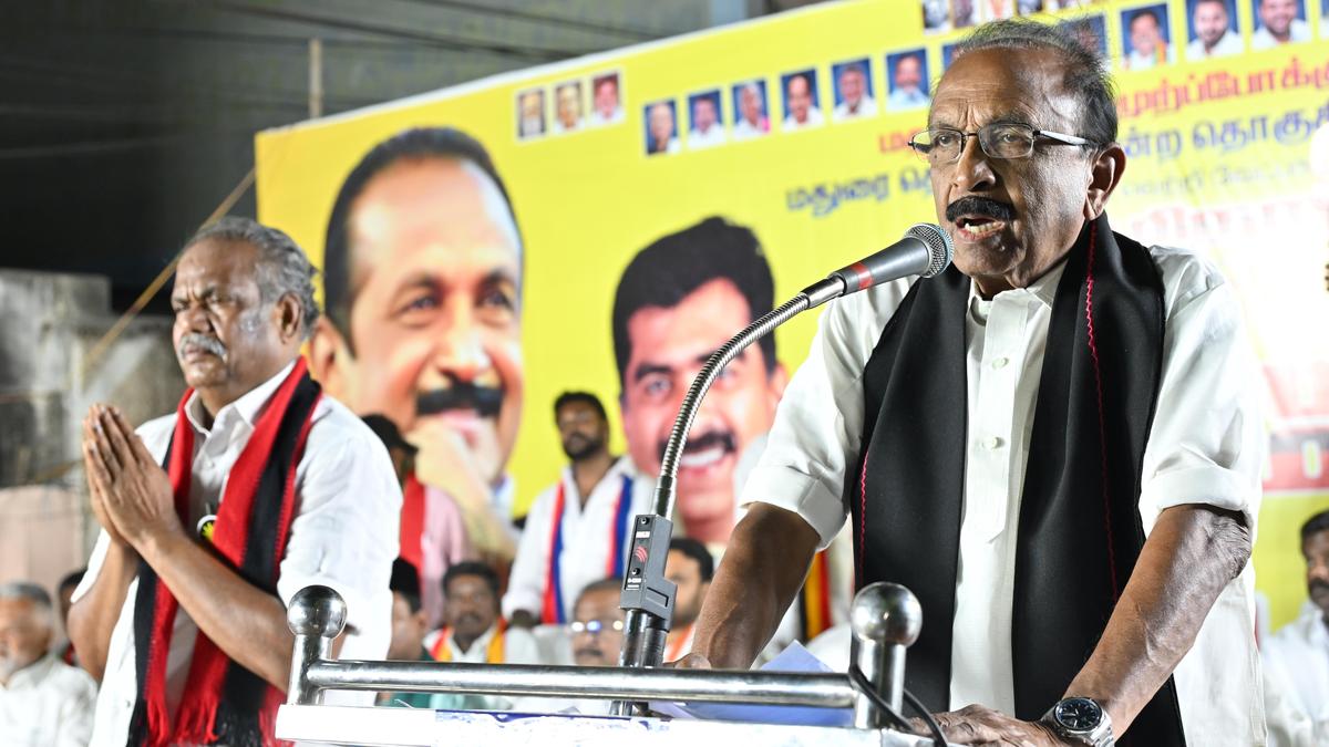 MDMK General Secretary Vaiko addressing at an election campaign for M. Boominathan, MDMK candidate for Madurai South Assembly constituency, on Wednesday. | Photo Credit: R. ASHOK MDMK General Secretary Vaiko on Wednesday criticised Maharashtra Chief Minister Devendra Fadnavis for his remarks stating that necessary steps for sanctioning the Madurai Metro Rail Project would be taken after BJP candidate Raama Srinivasan was elected from the Madurai South Assembly constituency. Mr. Fadnavis made the remark after accompanying Mr. Srinivasan for filing the nomination papers. Published – April 08, 2026 11:28 pm IST Share this: Click to share on WhatsApp (Opens in new window) WhatsApp Click to share on Facebook (Opens in new window) Facebook Click to share on Threads (Opens in new window) Threads Click to share on X (Opens in new window) X Click to share on Telegram (Opens in new window) Telegram Click to share on LinkedIn (Opens in new window) LinkedIn Click to share on Pinterest (Opens in new window) Pinterest Click to email a link to a friend (Opens in new window) Email More Click to print (Opens in new window) Print Click to share on Reddit (Opens in new window) Reddit Click to share on Tumblr (Opens in new window) Tumblr Click to share on Pocket (Opens in new window) Pocket Click to share on Mastodon (Opens in new window) Mastodon Click to share on Nextdoor (Opens in new window) Nextdoor Click to share on Bluesky (Opens in new window) Bluesky Like this:Like Loading... Post navigation Cyient Semiconductors acquires 74% stake in Kinetic Tech for $85 million No devotee of Ayyappa would have moved SC challenging exclusion of women of menstruating age: Justice Nagarathna