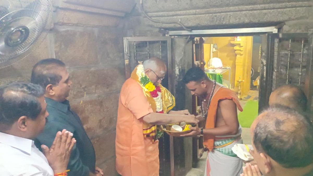 Vice-President of India C.P. Radhakrishnan offering prayers at Sri Sowmya Narayana Perumal Temple in Tirukoshtiyur near Tirupathur in Sivaganga district on Sunday. Vice-President of India C.P. Radhakrishnan at the ceremony to lay foundation stone for the statue of freedom fighter V.O. Chidambaram in Madurai on Sunday. | Photo Credit: R. ASHOK Vice-President of India C.P. Radhakrishnan visited the famous Sri Sowmya Narayana Perumal Temple in Tirukoshtiyur near Tirupathur in Sivaganga district on Sunday. The Vice President, who arrived in Madurai by a special flight, boarded a helicopter and reached Tirupathur helipad. Sivaganga Collector K. Porkodi, Lok Sabha MP Karti Chidambaram among others received the Vice-President. Later, he drove to the temple, where the head priests accorded a welcome and he had a darshan. Special pujas were performed on the occasion. BJP State president Nainar Nagenthran, district president Pandithurai and a few others participated in the pujas. On February 6, ‘samprokshanam’ was performed to the temple and the historic significance of the temple was explained to the Vice-President by the priests. The Vice-President visited the Sivaganga Palace, where he garlanded the statues of Sasivarna Thevar and Rani Velu Nachiyar. He was received by the Samasthanam Trustee Madhuranthaki Nachiyar, Mahesh Durai and Senthil Thondaiman and others. After a brief visit, Mr Radhakrishnan left for Madurai. The Vice President laid the foundation stone for construction of 140-feet tall V.O. Chidambaram statue in Madurai in the presence of Union Minister L. Murugan, New Justice Party Founder A.C. Shanmugam, Mr. Nainar Nagenthran and others. Later, he boarded the special aircraft from Madurai airport, where he was seen off by Minister KR Periakaruppan, Madurai Collector K.J. Praveen Kumar, Commissioner of Police J. Loganathan, Corporation Commissioner Chitra Vijayan and others, officials said. Published – February 22, 2026 08:51 pm IST Share this: Click to share on WhatsApp (Opens in new window) WhatsApp Click to share on Facebook (Opens in new window) Facebook Click to share on Threads (Opens in new window) Threads Click to share on X (Opens in new window) X Click to share on Telegram (Opens in new window) Telegram Click to share on LinkedIn (Opens in new window) LinkedIn Click to share on Pinterest (Opens in new window) Pinterest Click to email a link to a friend (Opens in new window) Email More Click to print (Opens in new window) Print Click to share on Reddit (Opens in new window) Reddit Click to share on Tumblr (Opens in new window) Tumblr Click to share on Pocket (Opens in new window) Pocket Click to share on Mastodon (Opens in new window) Mastodon Click to share on Nextdoor (Opens in new window) Nextdoor Click to share on Bluesky (Opens in new window) Bluesky Like this:Like Loading... Post navigation Man’s electrocution while fishing sparks concerns over power theft How opaque healthcare pricing burdens patients in India