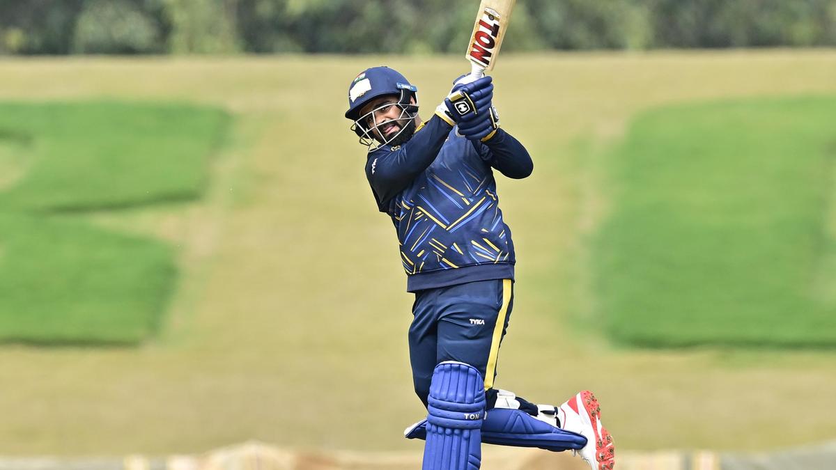 Prabhsimran Singh starred in Punjab’s win against Madhya Pradesh. | Photo Credit: K. MURALI KUMAR Yash Rathod smashed 86 as Vidarbha made short work of Delhi in the quarterfinals. | Photo Credit: K. MURALI KUMAR An efficient Vidarbha outclassed Delhi by 76 runs in the Vijay Hazare Trophy quarterfinal at the BCCI CoE (2) ground here on Tuesday. The Vidarbha batting fired first, with Yash Rathod (86), Atharva Taide (62) and Dhruv Shorey (49) playing their part to take the side to 300 for nine. The Delhi reply was stunted early when fast bowler Nachiket Bhute dismissed key batters Priyansh Arya (28) and Nitish Rana (0) off successive balls. Priyansh looked in good touch, until he feathered a delivery going down leg. Rana’s ambitious upper cut landed in the safe hands of R. Samarth at third-man. Off-spinner Harsh Dubey then went through the middle-order, leaving Delhi on 123 for five. Anuj Rawat (66, 98b, 7×4) hung around as Delhi’s last hope. The southpaw was circumspect even as the asking rate rose to ten an over. Rawat’s plan to leave the big hitting to the end failed, as he top-edged a slower ball from Praful Hinge to cover in the 43rd over. In the other quarterfinal at the BCCI CoE (1), Punjab whipped Madhya Pradesh by 183 runs. After being put in to bat, Punjab played with positive intent from the get-go. The top-three – Harnoor Singh (51, 71b, 7×4, 1×6), Prabhsimran Singh (88, 86b, 10×4, 2×6) and Anmolpreet Singh (70, 62b, 8×4, 2×6) – laid the perfect start. Nehal Wadhera (56, 38b, 8×4, 1×6) and Ramandeep Singh (24 n.o., 15b, 1×4, 1×6) had the license to go for the kill in the death. Madhya Pradesh had perhaps expected the pitch to aid seamers, as it did at this venue on Monday. But with the sun out, unlike overcast conditions seen the previous day, it was the batters who called the shots. Madhya Pradesh caved in meekly on a friendly pitch, falling to 83 for six inside 20 overs. Expectations were high when captain Venkatesh Iyer joined Rajat Patidar at the fall of the third wicket, but Venkatesh lasted all of two balls. Venkatesh played down the wrong line to seamer Sanvir Singh, and was adjudged leg-before. When Patidar was sent back trying to up the scoring rate, the writing was on the wall for Madhya Pradesh. Karnataka will face Vidarbha in the semifinal here on Thursday, while Punjab battles Saurashtra on Thursday. The scores: Punjab 345/6 in 50 overs (Harnoor Singh 51, Prabhsimran Singh 88, Anmolpreet Singh 70, Nehal Wadhera 56) bt Madhya Pradesh 162 in 31.2 overs. Vidarbha 300/9 in 50 overs (Atharva Taide 62, Dhruv Shorey 49, Yash Rathod 86) bt Delhi 224 in 45.1 overs (Anuj Rawat 66, Nachiket Bhute 4/51). Published – January 13, 2026 07:24 pm IST Share this: Click to share on WhatsApp (Opens in new window) WhatsApp Click to share on Facebook (Opens in new window) Facebook Click to share on Threads (Opens in new window) Threads Click to share on X (Opens in new window) X Click to share on Telegram (Opens in new window) Telegram Click to share on LinkedIn (Opens in new window) LinkedIn Click to share on Pinterest (Opens in new window) Pinterest Click to email a link to a friend (Opens in new window) Email More Click to print (Opens in new window) Print Click to share on Reddit (Opens in new window) Reddit Click to share on Tumblr (Opens in new window) Tumblr Click to share on Pocket (Opens in new window) Pocket Click to share on Mastodon (Opens in new window) Mastodon Click to share on Nextdoor (Opens in new window) Nextdoor Click to share on Bluesky (Opens in new window) Bluesky Like this:Like Loading... Post navigation Police celebrate Sankranti with community bonding in Puttaparthi Woman murdered by paramour in Yercaud