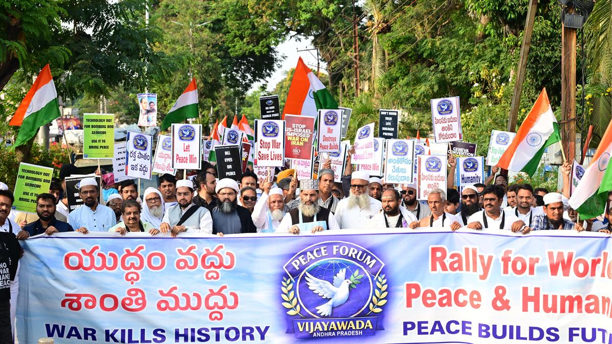 Amid rising global tensions, Vijayawada witnessed a strong display of unity as people from diverse sections participated in a peace rally opposing war. Organised by the Peace Forum Vijayawada, the rally reflected concerns over ongoing conflicts, including the Ukraine-Russia war and unrest in West Asia.