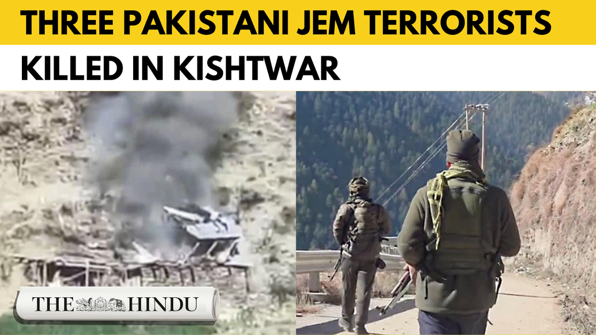 Three terrorists of Pakistan-based Jaish-e-Mohammad were killed in a joint Army–J&K Police encounter in the Chatroo area of Kishtwar under Operation “Trashi-I.” Share this: Click to share on WhatsApp (Opens in new window) WhatsApp Click to share on Facebook (Opens in new window) Facebook Click to share on Threads (Opens in new window) Threads Click to share on X (Opens in new window) X Click to share on Telegram (Opens in new window) Telegram Click to share on LinkedIn (Opens in new window) LinkedIn Click to share on Pinterest (Opens in new window) Pinterest Click to email a link to a friend (Opens in new window) Email More Click to print (Opens in new window) Print Click to share on Reddit (Opens in new window) Reddit Click to share on Tumblr (Opens in new window) Tumblr Click to share on Pocket (Opens in new window) Pocket Click to share on Mastodon (Opens in new window) Mastodon Click to share on Nextdoor (Opens in new window) Nextdoor Click to share on Bluesky (Opens in new window) Bluesky Like this:Like Loading... Post navigation Stalin gave ₹5,000 only because of pressure from AIADMK: Palaniswami Forest department tightens plastic checks at Zero Point and Keeriparai check posts